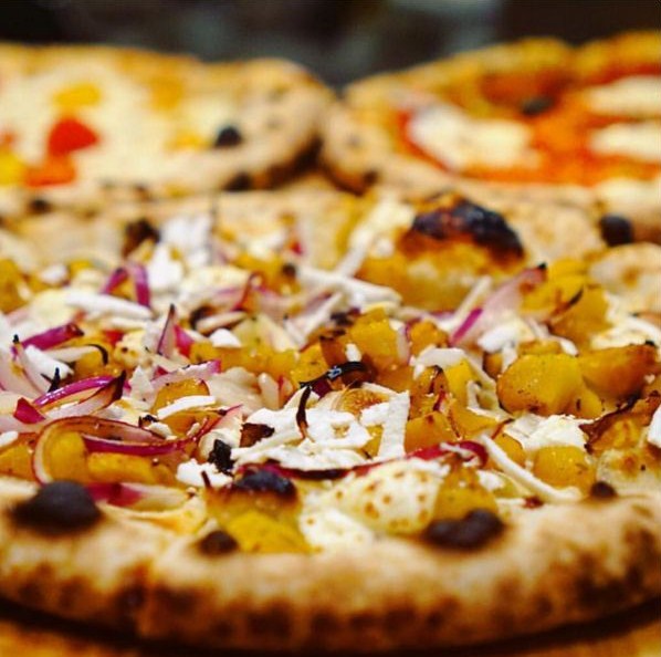 Da provare: data la stagione autunnale tifo per la pizza ZUCCA, con formaggio di capra, cipolle arrostite, zucca caramellata e ricotta salata (Fresh Goat Cheese, Caramelized Butternut Squash, Roasted Red Onions, Shaved Ricotta Salata, San Giuliano Cuore d’Olivo Organic EVOO), ma anche LA MORTAZZA mi richiama radici nostrane (chissà perché non sento il bisogno di elencare gli ingredienti…). Apprezzo l’originalità del servizio: niente piatti, ma taglieri di legno. Anzi, grandi taglieri: grandi taglieri per grandi pizze!