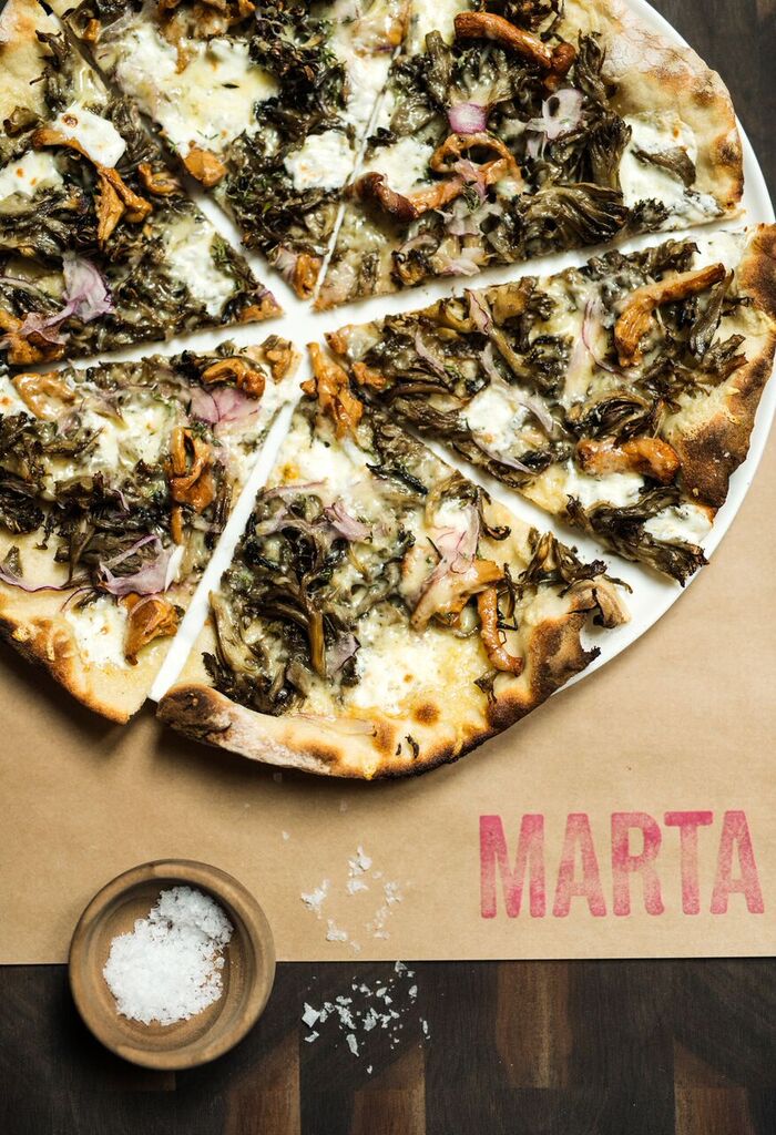 Le pizze sono sottili, croccanti e generose (la GUANCIALE con soppressata, salsiccia e guanciale sfida i palati più delicati); la carne è alla brace come piace a noi, e anche pesce e verdure sono proposti alla griglia e rigorosamente di stagione. Qualità e gusto per la tradizione, tra birre americane e vini italiani. Un mix non inedito ma mai scontato, un esperimento che, quando riesce, riesce meravigliosamente! Come da Marta.