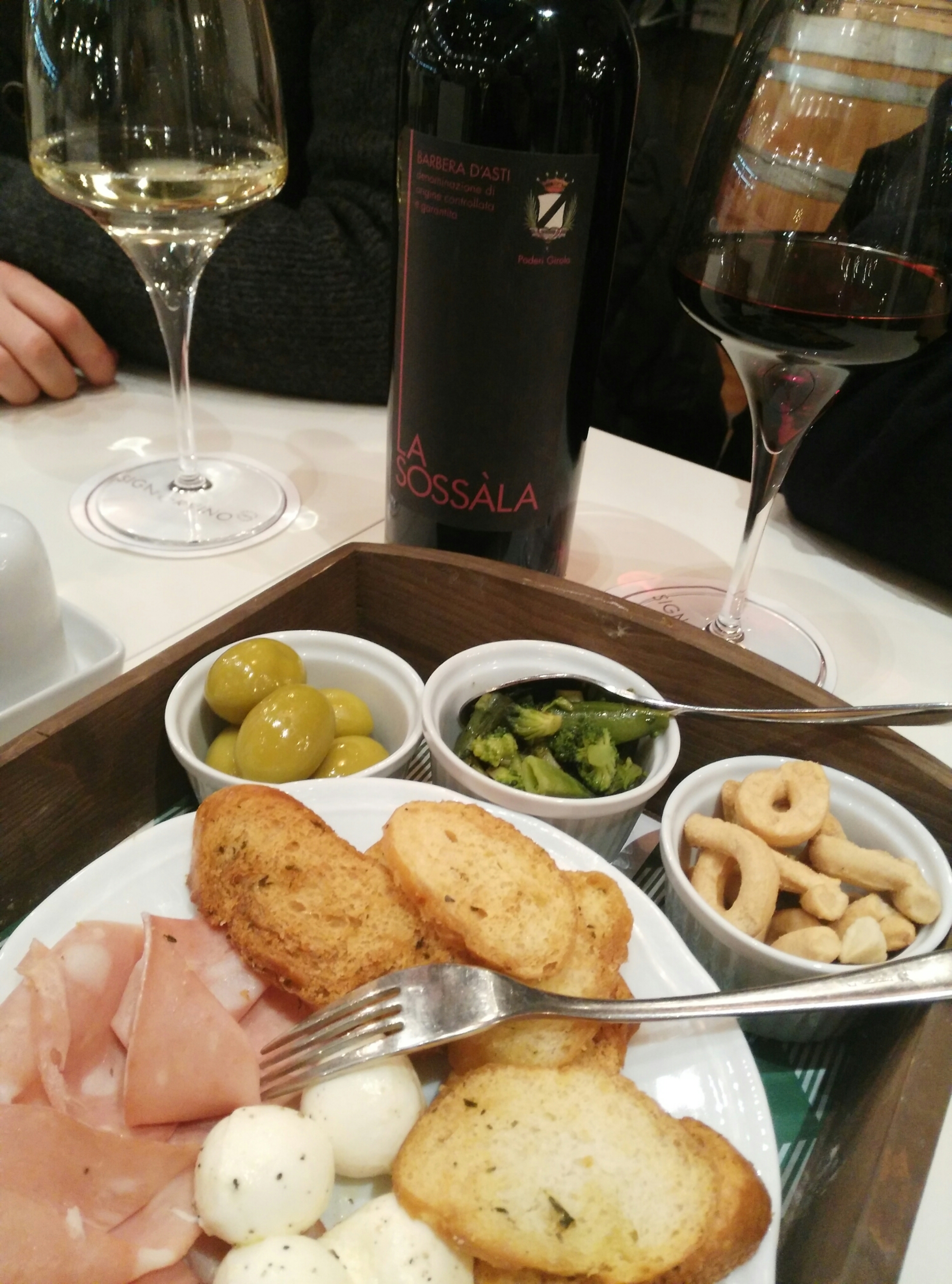 Parliamo di vini in mezzo alle migliaia di bottiglie di SIGNORVINO, meravigliosa enoteca e wine bar a fianco de La Rinascente (http://www.signorvino.com/it, Via Lagrange 13, Torino): entri e sei travolto da fiumi di etichette da tutta Italia, ti addentri nel negozio e scopri una zona degustazione/ristorante dove la gentilezza dei collaboratori e sommelier vi farà sentire a casa. Chiedete di Chiara: bionda, entusiasta e dotata di ottimi consigli in materia di vini (riuscirebbe a far bere a un francese un bel Superiore di Cartizze al posto di una flûte di Champagne!).