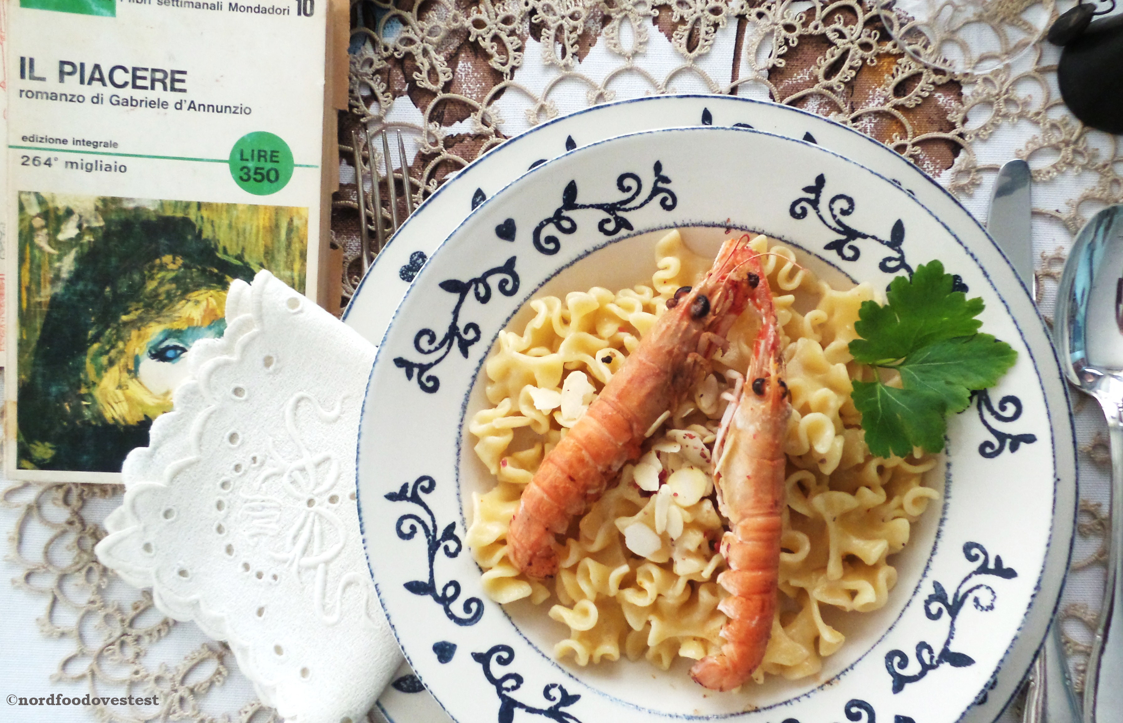 Oggi e per altri due post, nordfoodovestest ci conduce nei sentieri del piacere, quello legato alle suggestioni della memoria e al brivido seduttivo dell’ignoto; il piacere che per me è ricordo e che non muore, il piacere che io racconto e rendo eterno, quello che condivido e scambio, e proprio in questo scambio mi rendo conto di quanto sia semplice. Forse ricordiamo con più facilità le cose semplici: quegli spaghettini erano essenziali, fatti con ingredienti di qualità e cucinati con amore, eppure essenziali. E io forse li ricordo così nitidamente proprio perché, dopotutto, erano “solo” un piatto di pasta. Il gusto per le cose semplici è un gusto immortale, è la base su cui noi costruiamo i dettagli dei nostri ricordi, che poi impreziosiamo. Un semplice piatto di pasta diventa per me, arricchito dalla mia memoria, un vero e proprio banchetto nuziale. Un piacere semplice e unico.