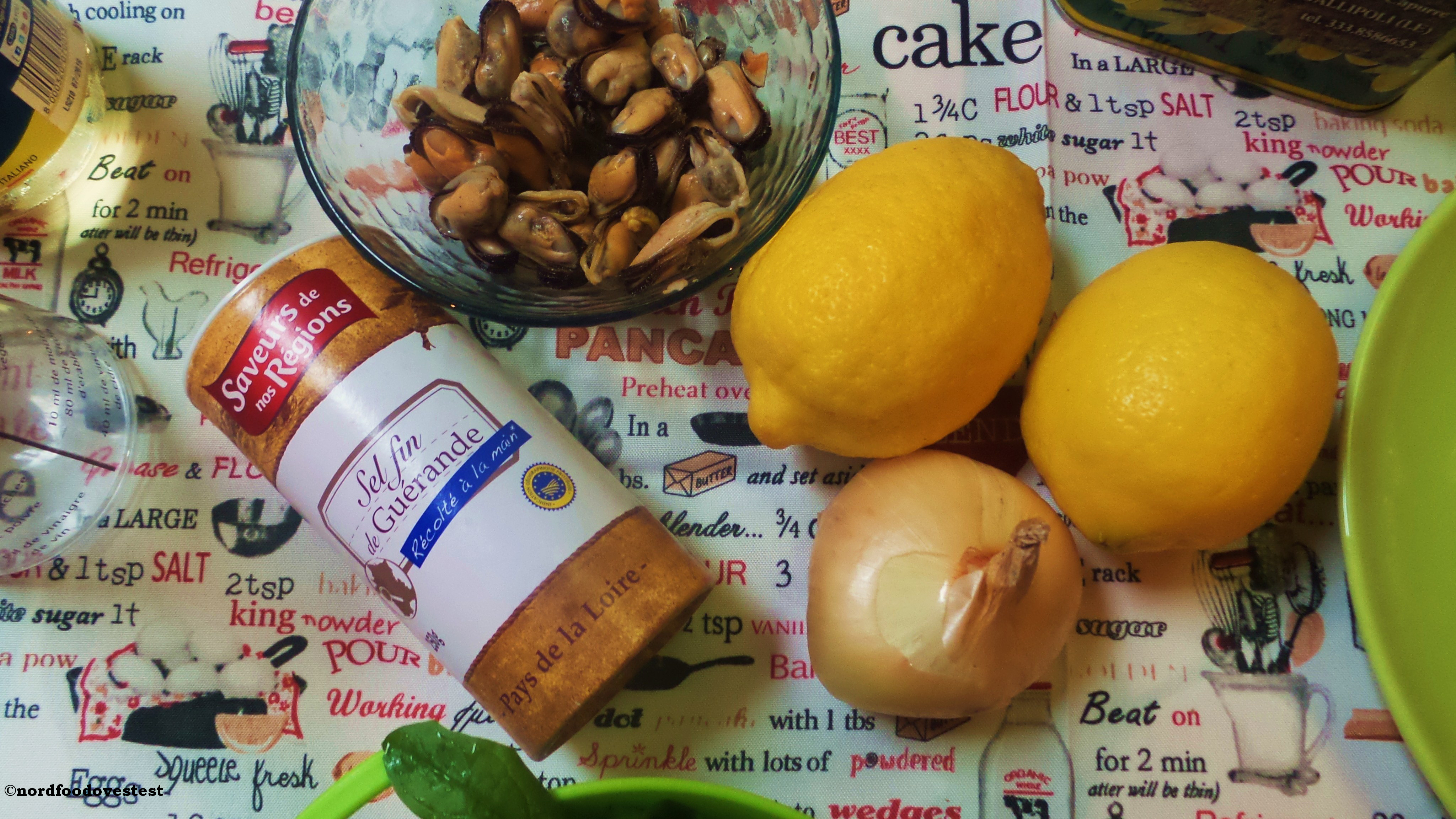 Cozze: 100 gr di cozze sgusciate già pulite; sale e pepe q.b; 1 cucchiaio di olio EVO; 1 cucchiaino di zenzero grattugiato