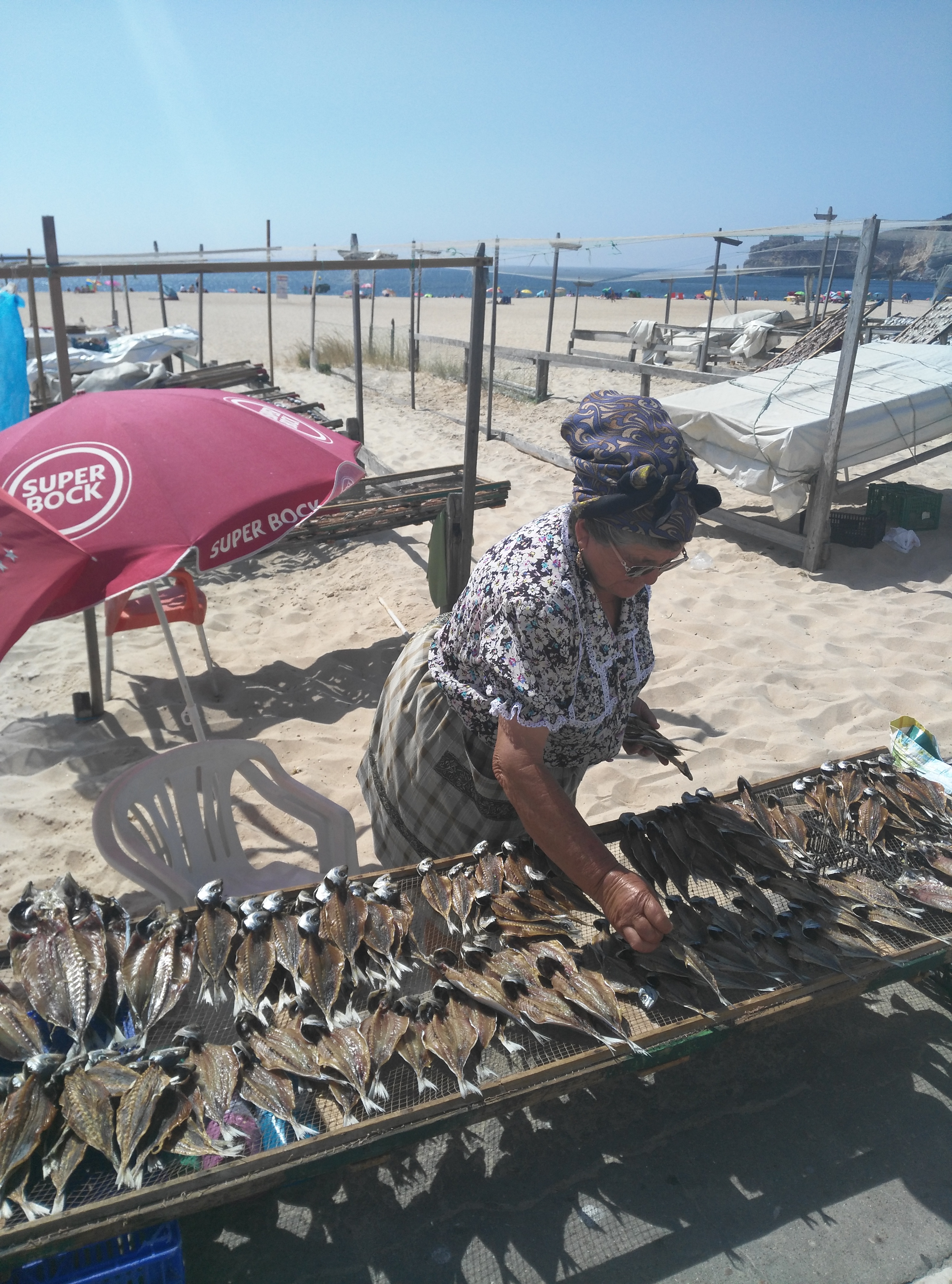 Day4. Fare colazione con croissant al cioccolato che però sanno anche di uovo e latte. Passare il pomeriggio a fissare le donne che essiccano carapau al sole, fermarsi a chiacchierare con Manuela che essicca carapau e polpi e ti spiega come mangiarli. Fare il bagno nell’oceano, che non è proprio bagno ma lavaggio di piedi dato che l’acqua è gelata. Ma se stai fermo a riva, lo senti, impetuoso e maestoso, e ti inchini a tanta bellezza. Mangiare pane, burro, olive e paté di sardine e trovare tutto meravigliosamente buono. Correre sulla sabbia e avere la sensazione di camminare su del pan grattato.
