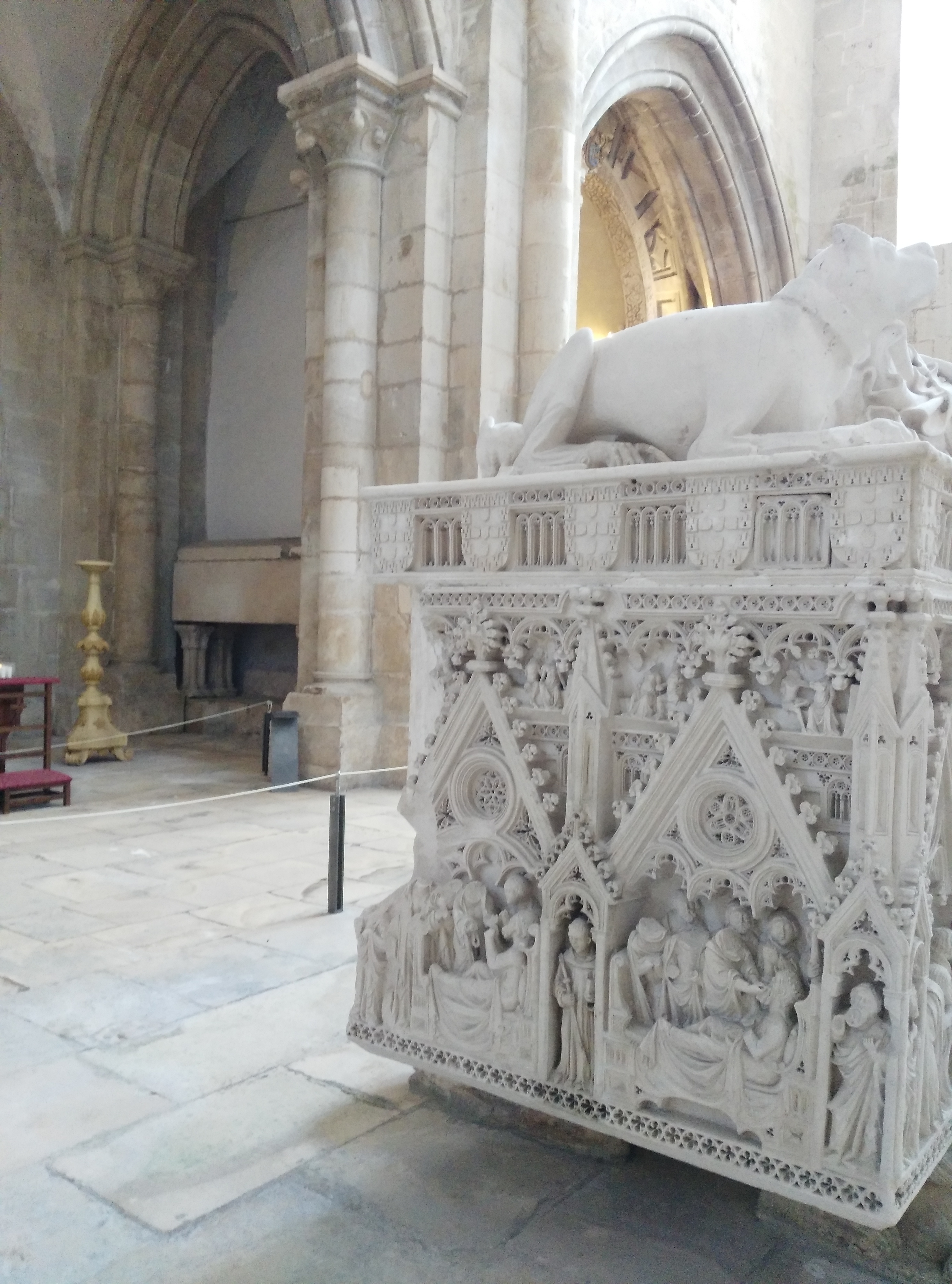 Day5. Perdersi in un mare di ceramiche come se si stesse nuotando in un oceano. Sono di mille colori di mille forme di mille dettagli e ognuna ti parla dritta al cuore. Entrare nel Monastero di Alcobaça e leggere la storia di Ines e Pedro: la storia d’amore delle storie d’amore, ovviamente contrastata e tragica, ma piena di intensità. E lì, davanti alla tomba della giovane Ines, una lacrima scende in fondo ai suoi piedi, dove un piccolo cane di pietra sta dormendo. Anzi, sta proteggendo la sua anima. Mangiare sardine con la naturalezza con cui si beve acqua, e poi finire con un dolcino pluripremiato che profuma di uova, marmellata di zucca e mandorle. Trovare cuori appesi a un albero, e lì appendere anche il mio, così che il sole portoghese _ caldo e timido insieme _ possa custodirlo. Insieme a Ines e alle sardine.