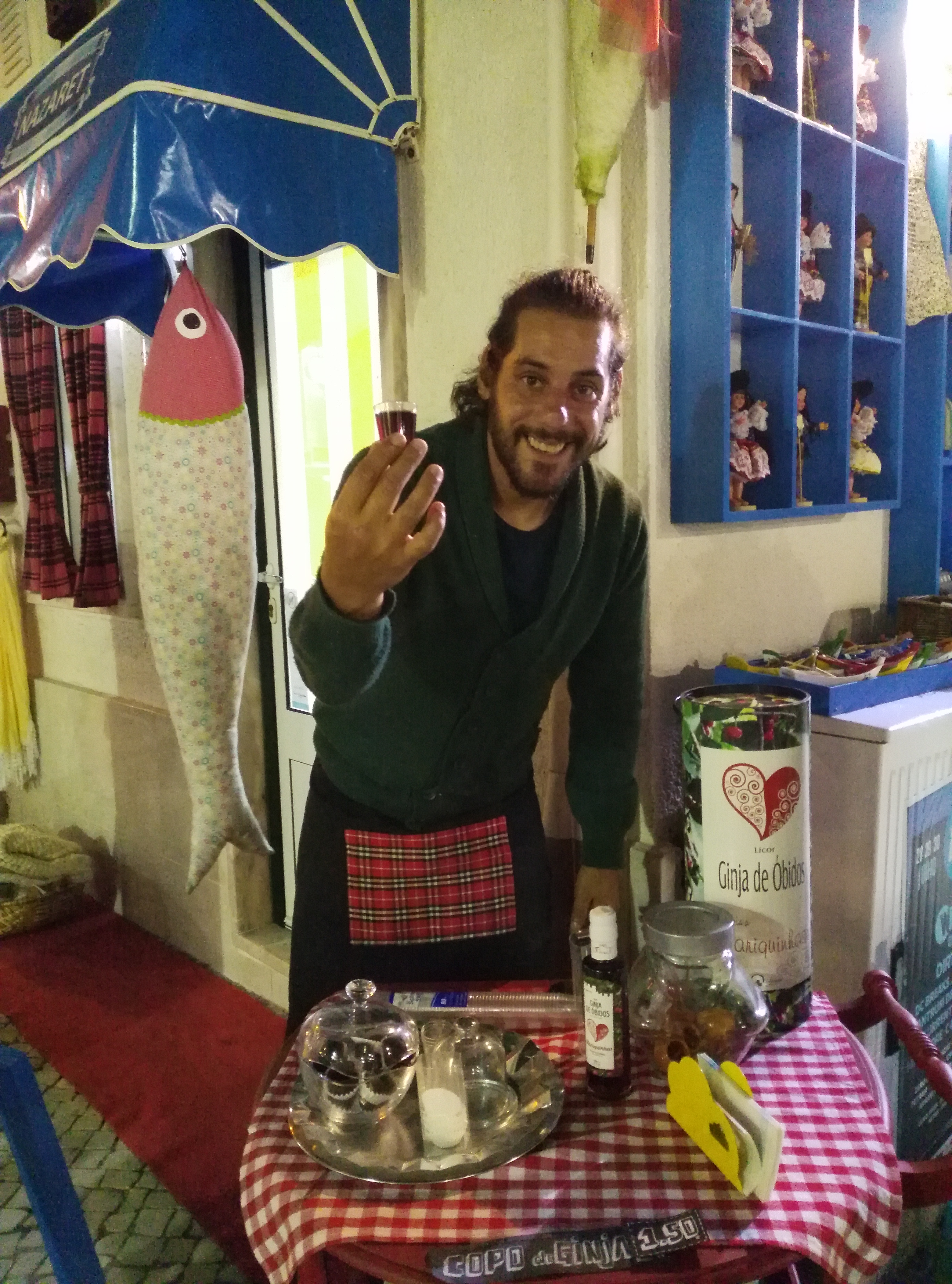 Day7. Finire in un mercato zingaro pieno di colori e urla e camioncini che preparano sfoglie calde di carne e formaggio. Scoprire una loja che vende miele di Fatima, sardine di stoffa, ginja nel cioccolato e pietre decorate a mano. Immergersi nel folclore oceanico dove bambini ragazzi e adulti ballano balli impossibili che farebbero girare la testa a chiunque, tranne che a loro 🙂 Cenare con una orata appena pescata, insalata e patate e pagare questa fine del mondo sei euro. Andare a dormire con la voce forte, elegante e possente della cantante di Fado ancora nel cuore. E ritrovare in quella voce il colore della nebbia la mattina: rosa e soave…