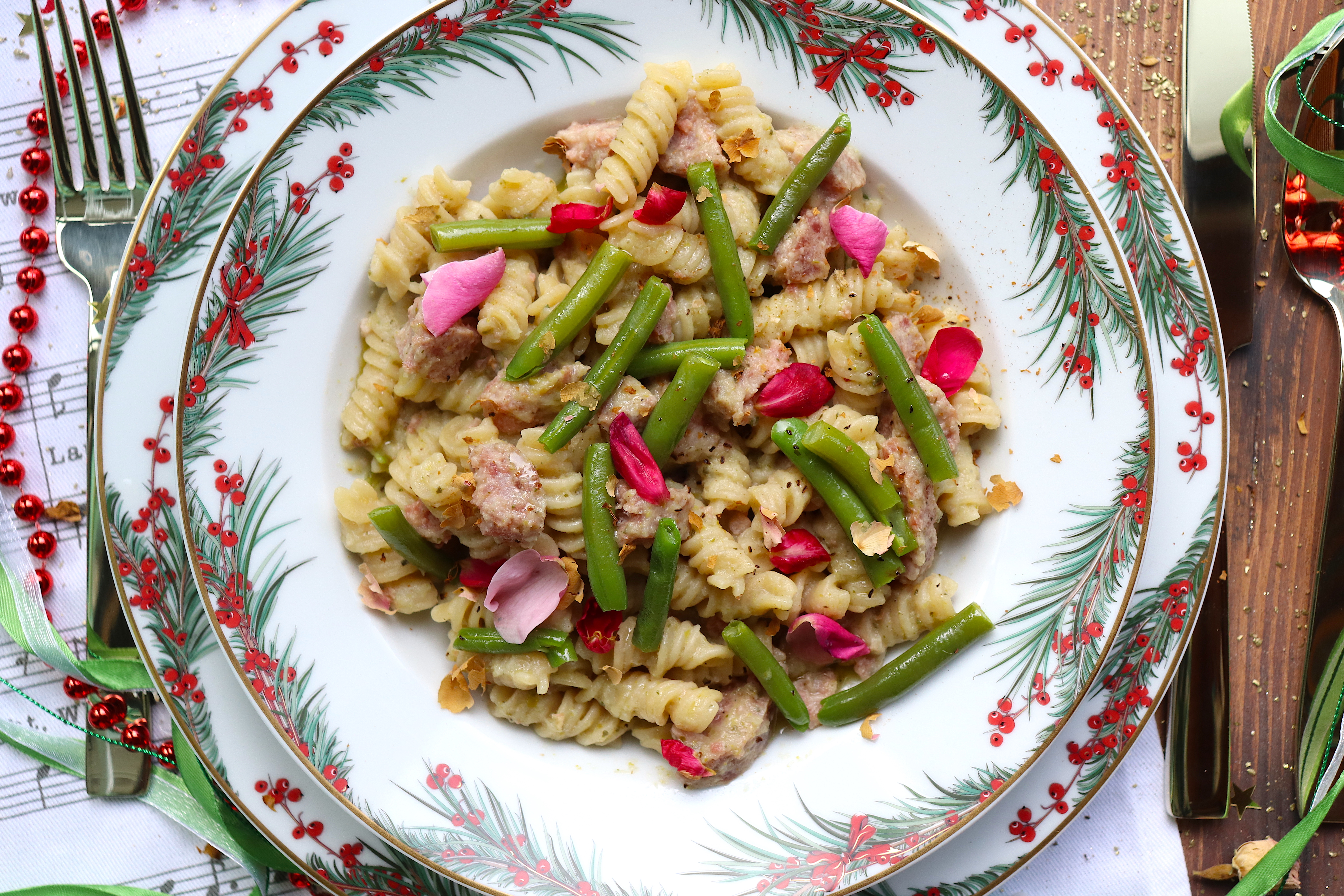 - Scolate la pasta al dente (conservate un mestolo di acqua di cottura). Aggiungetela al condimento insieme all’acqua di cottura, e cuocete ancora un paio di minuti a fiamma bassa.