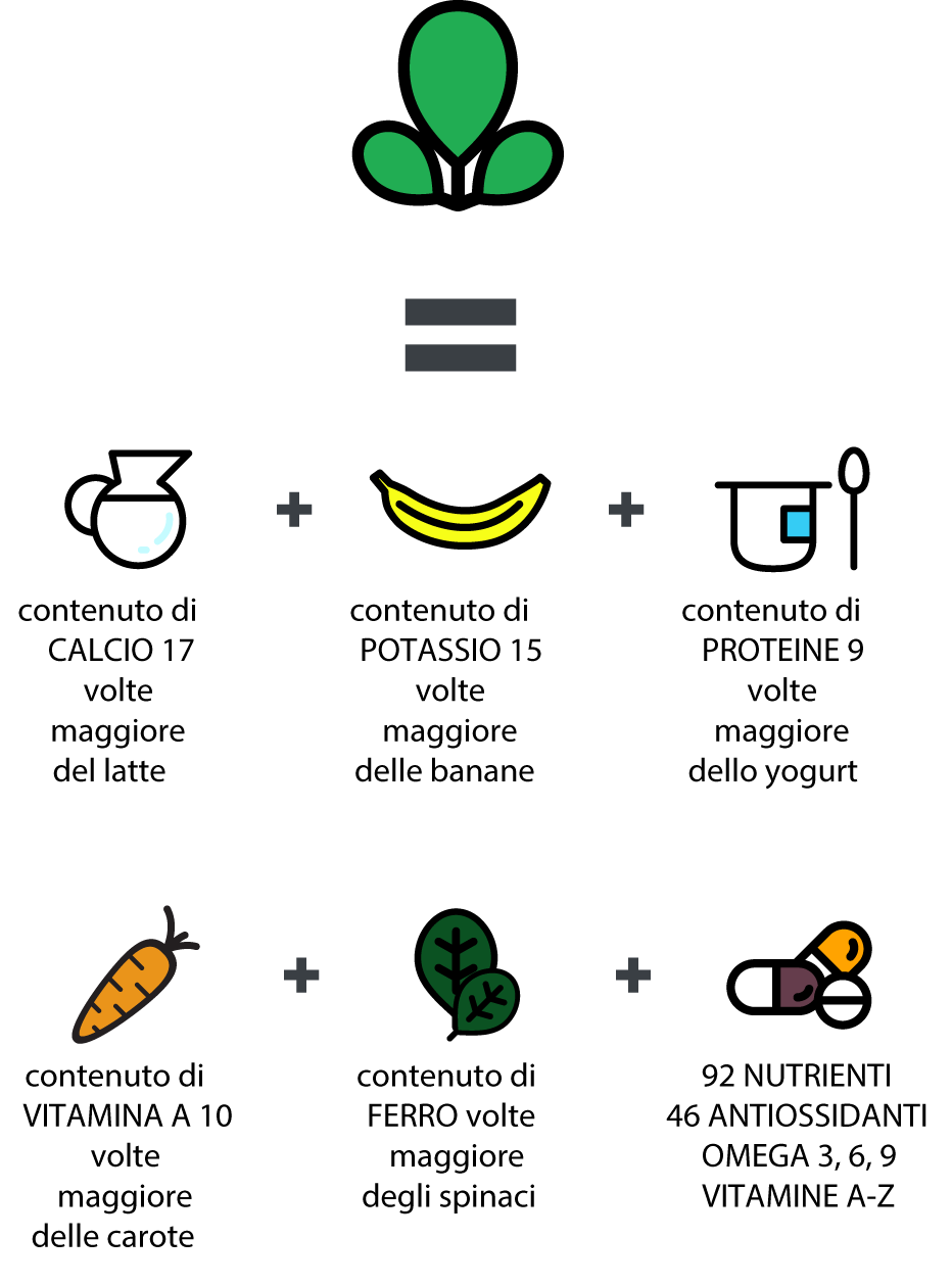La MORINGA OLEIFERA è anche conosciuta come l'”albero miracoloso”. Praticamente tutta la pianta è commestibile e il contenuto proteico delle sue parti è completo: contengono infatti tutta la gamma di aminoacidi necessari per il fabbisogno proteico, caratteristica questa posseduta – alle conoscenze attuali – dalla sola Moringa. Per questo viene utilizzata da molte popolazioni per la cura di debolezza, malnutrizione e anche per l’alimentazione neonatale. Nello specifico: il contenuto di calcio è 17 volte maggiore del latte; quello di potassio 15 volte maggiore delle banane; quello di proteine 9 volte maggiore dello yogurt. Infine, il contenuto di Vitamina A è 10 volte maggiore delle carote; quello di ferro 25 volte maggiore degli spinaci e, complessivamente, possiede 92 nutrienti, 46 antiossidanti (il suo potere antiossidante è elevatissimo), 18 aminoacidi, 9 aminoacidi essenziali, omega 3,6,9 e vitamine. L’alto contenuto in proteine vegetali permette a chi segue una dieta vegana e vegetariana una totale integrazione di questi nutrienti. Inoltre, per la sua azione tonico-adattogena, è indicato nei periodi di stress e stanchezza (io l’ho assunto proprio in un periodo di stress fisico notevole, e ho sperimentato una maggiore forza e anche distensione).
