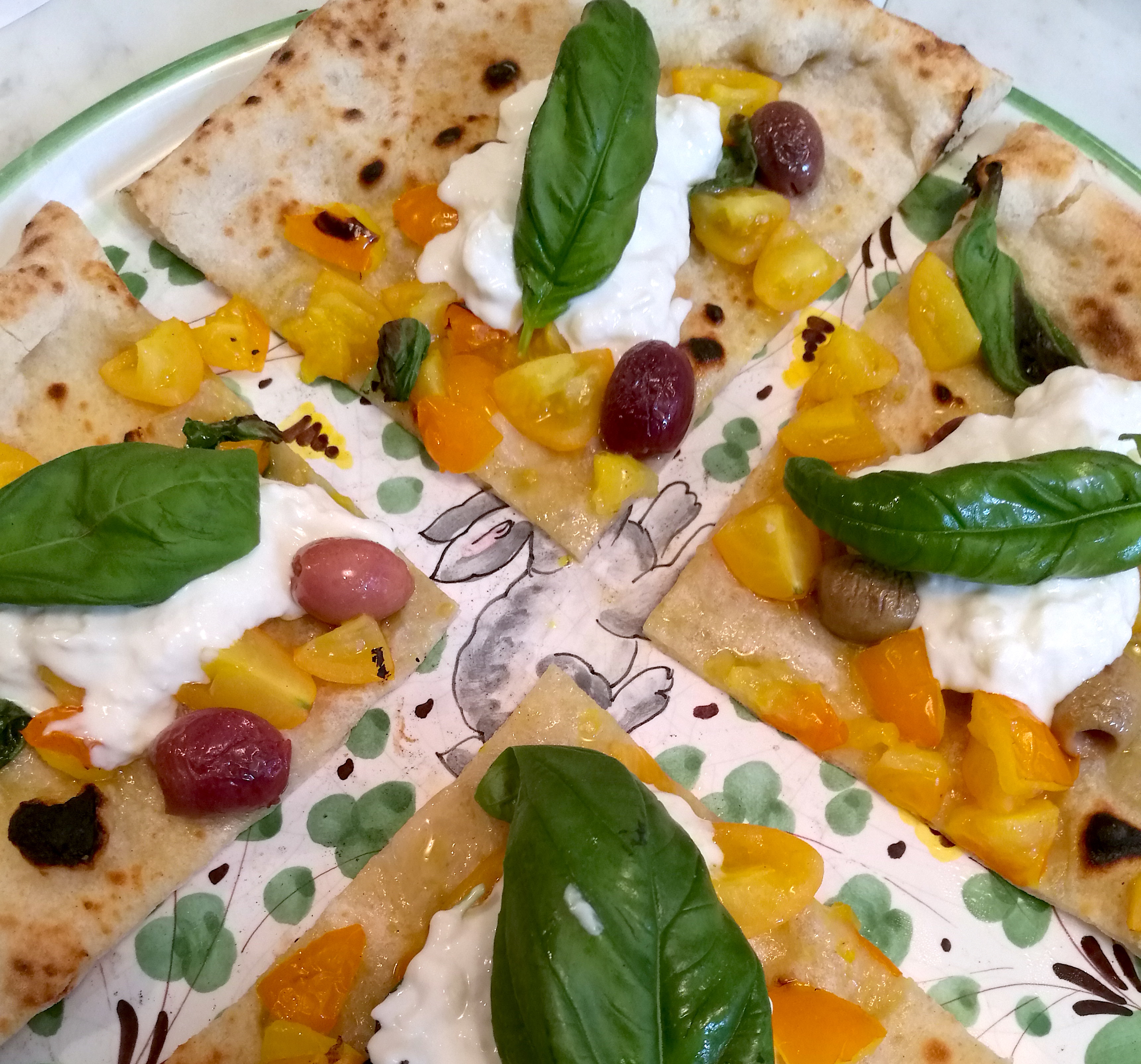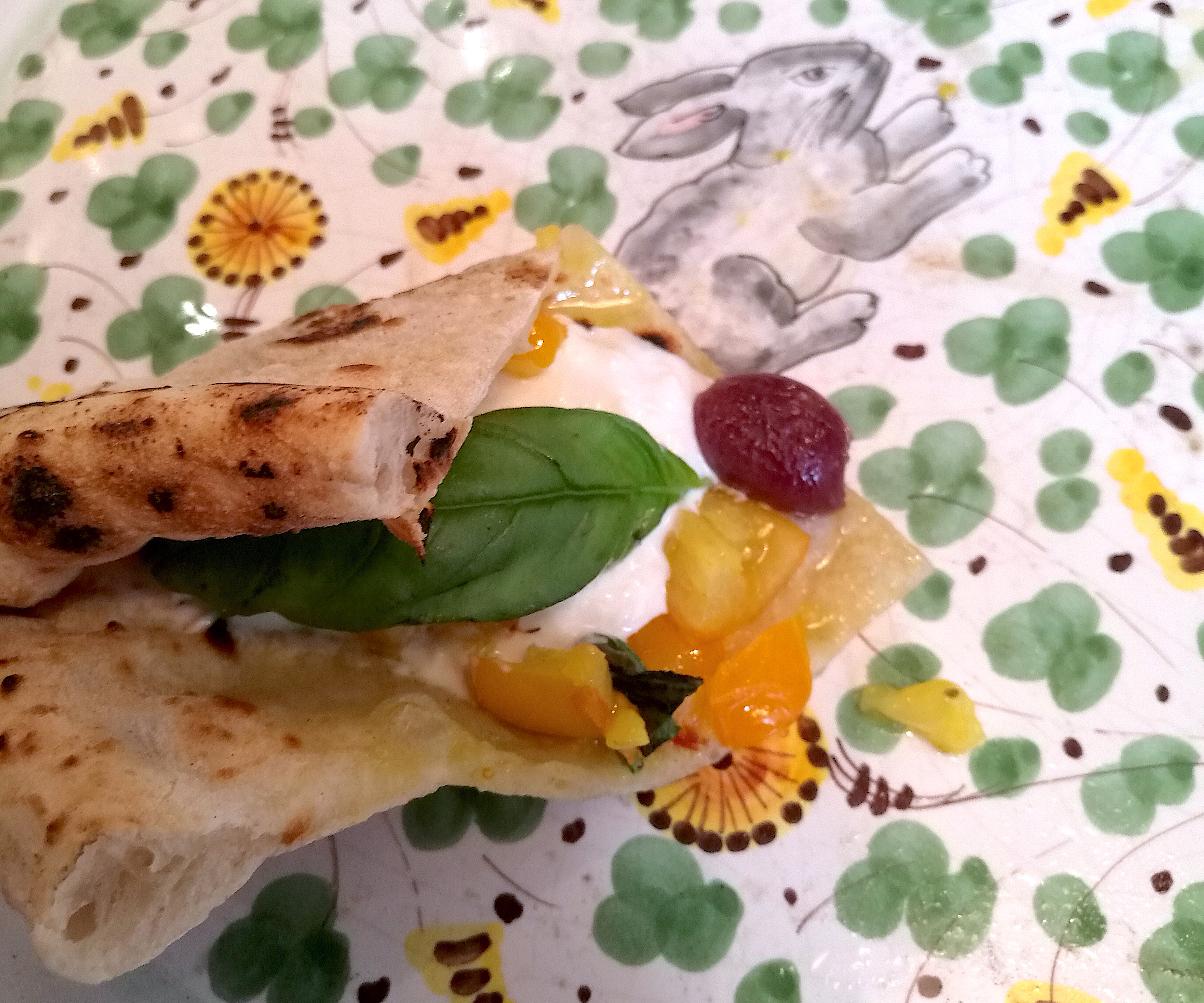 Ecco, un bellissimo viaggio: dalla Napoli della pizza (la pizza Campania con provola affumicata, salsiccia fresca e friarielli è già nei miei desiderata) alla Puglia dell’extravergine (qui si adopera quello del Frantoio di Molfetta) alla Liguria del basilico, all’Umbria delle ceramiche.