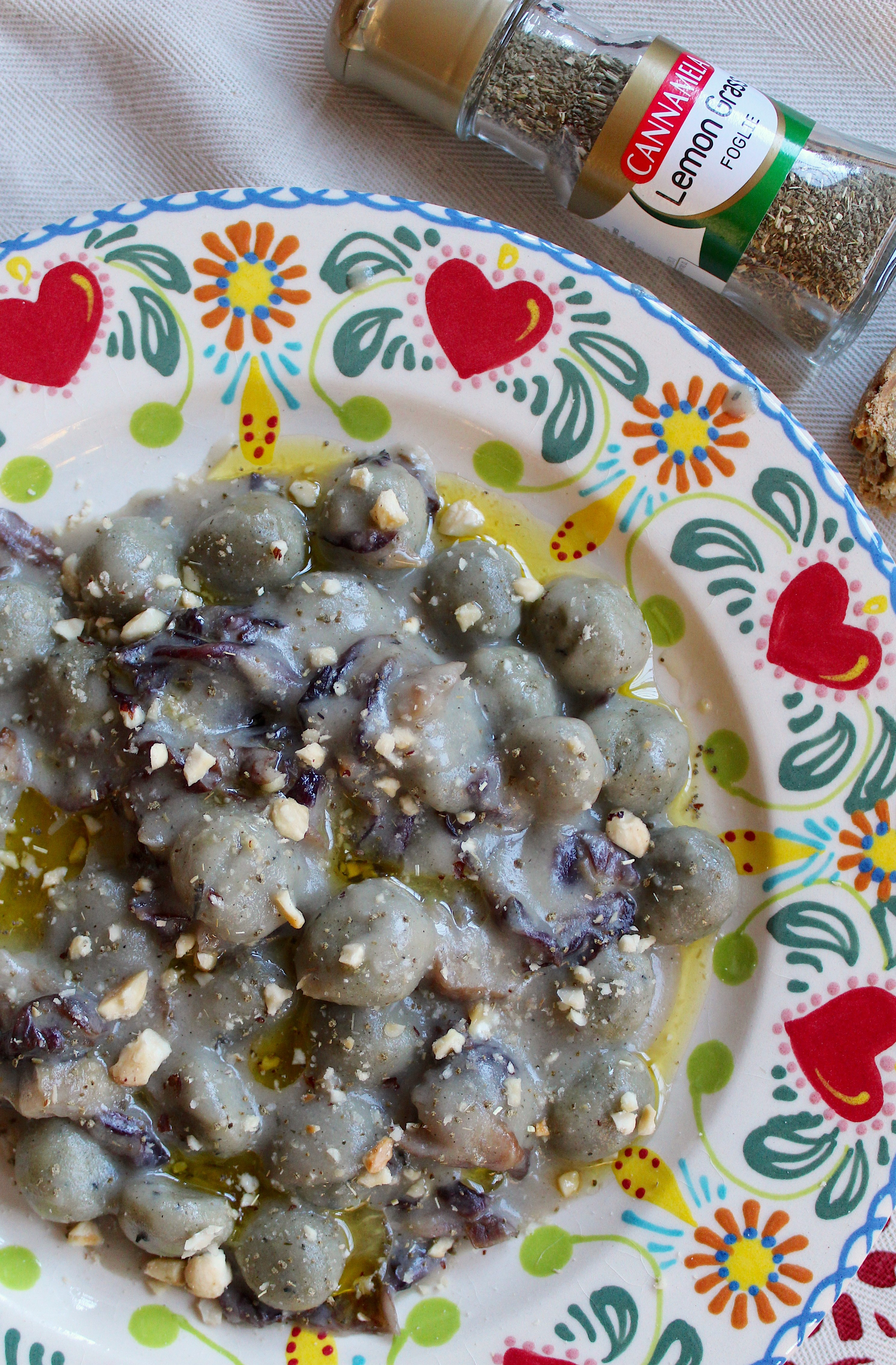 GNOCCHI ALLE ORTICHE CON FONTINA E RADICCHIO, LEMONGRASS E BRICIOLE DI NOCCIOLA. Ricetta vegetariana