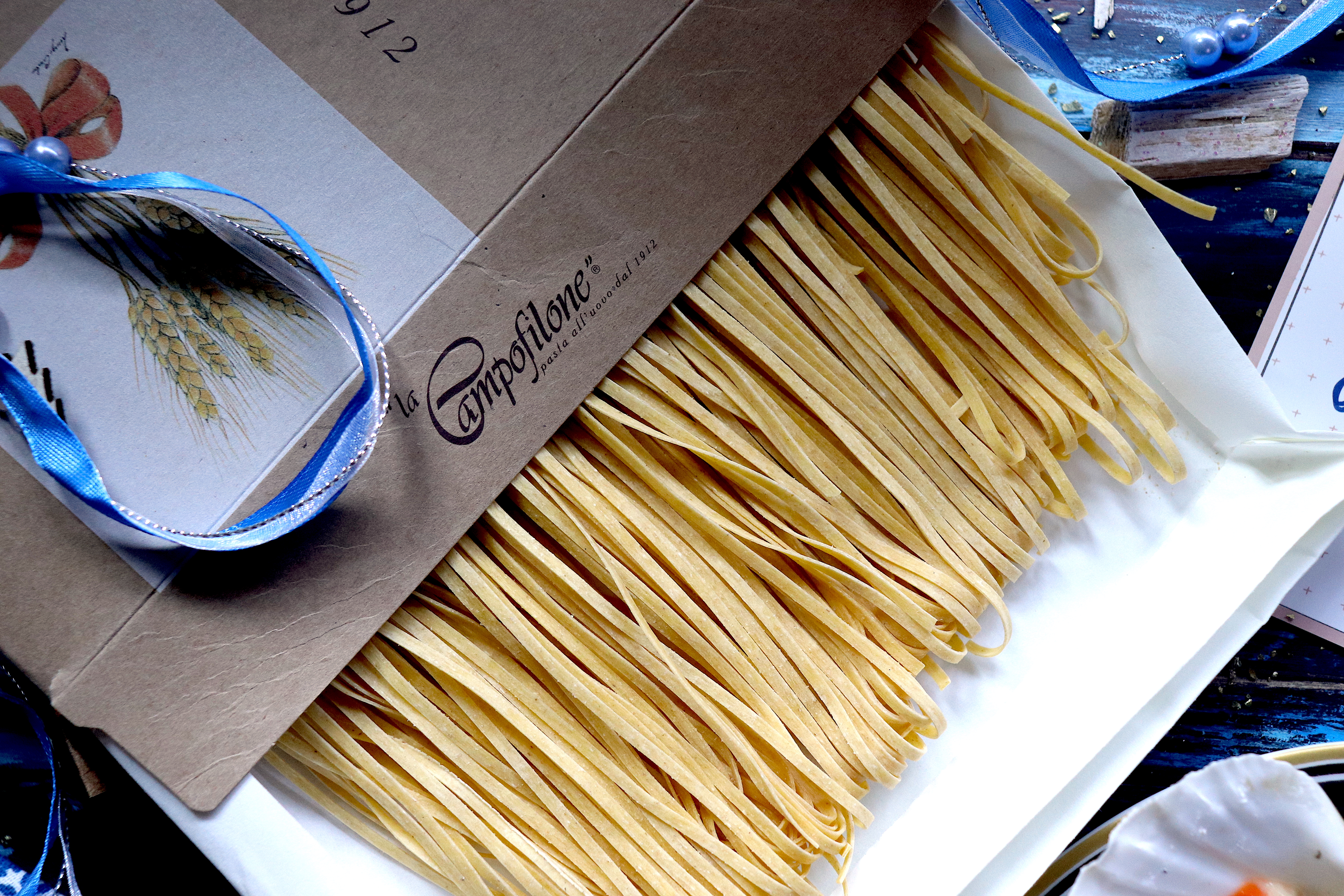 Come queste pirofile, che questa volta ho scelto proprio come piatto da servizio: la trasparenza dei vetri e lo sfondo blu del tavolo creano un piatto sospeso, la leggerezza delle fettuccine così viene accentuata da una mise en place tanto pratica quanto raffinata. Le potete ordinare a questo link.