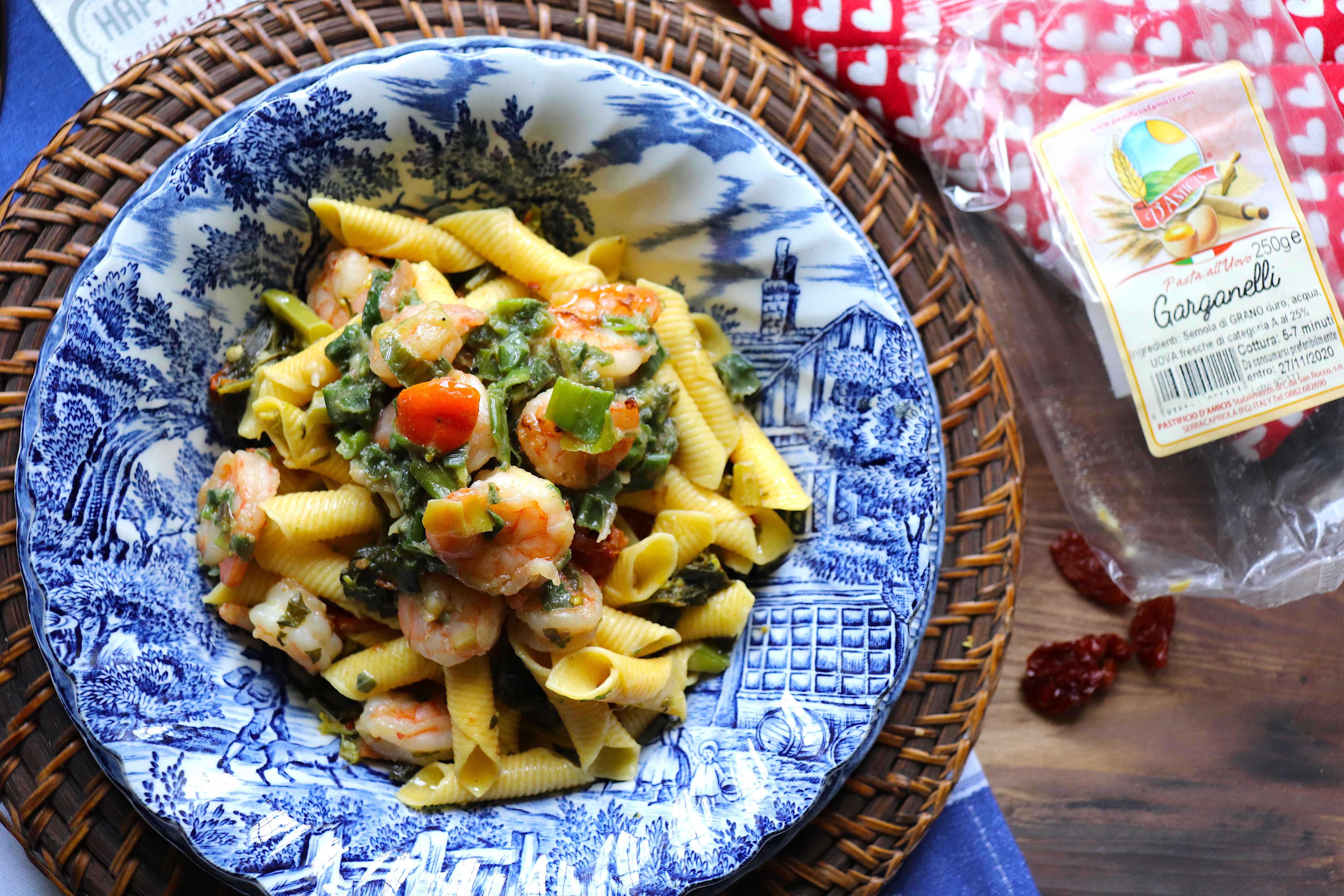 ricetta-garganelli-gamberi-e-cime-di-rapa