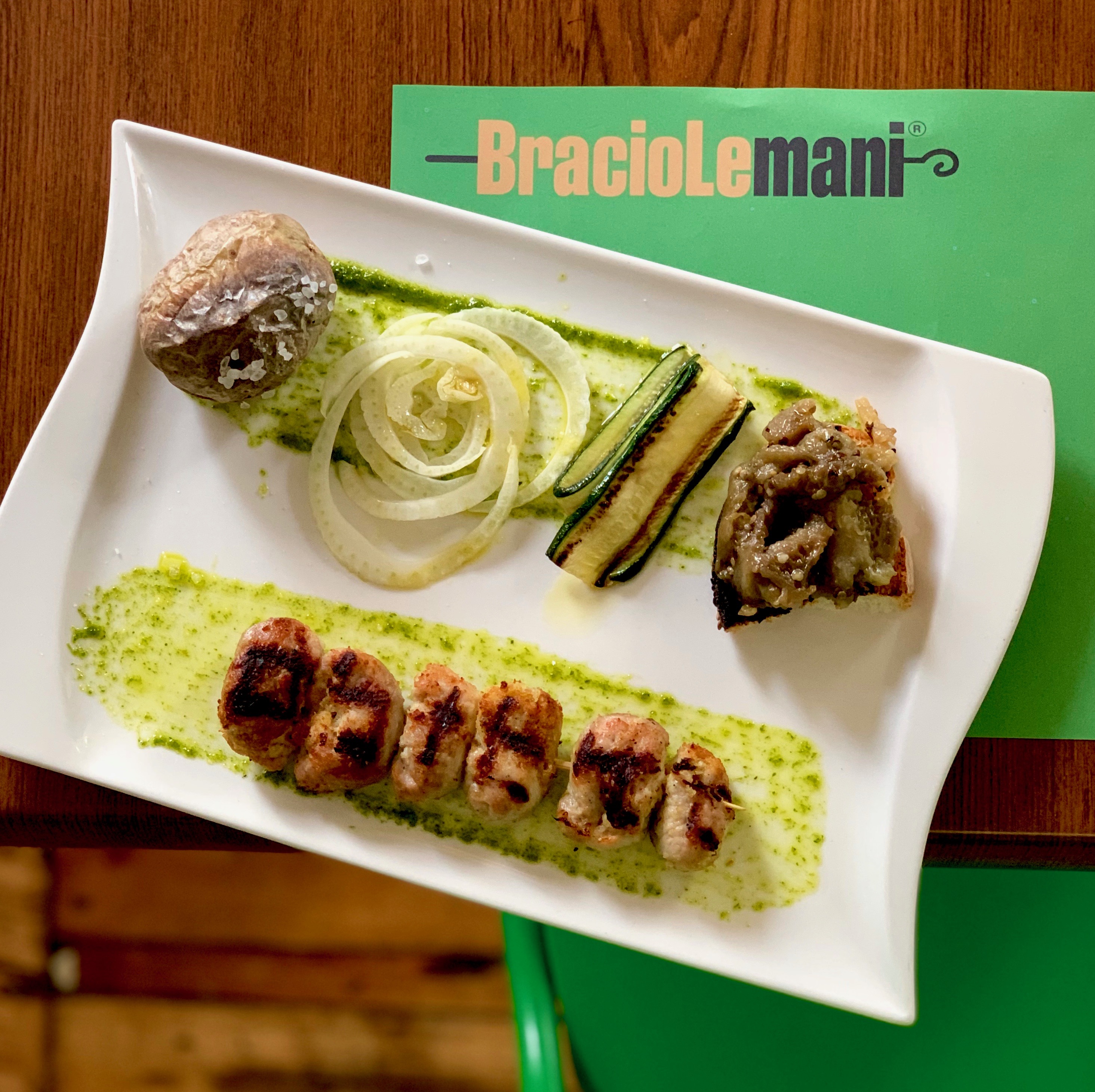 Siamo a Torino a due passi dalla Mole Antonelliana e BRACIOLEMANI è davvero un inno golosissimo a questi involtini di carne tipici di Messina ripieni di mollica condita con prezzemolo, formaggio, olio, sale e pepe: cucinati alla brace sul momento, Fabio li serve in quattro modi diversi (al piatto con contorno, al cartoccio, arrotolato, panino) ed esistono perfino nella versione vegetariana che – vi assicuro – è pazzesca, pazzesca!