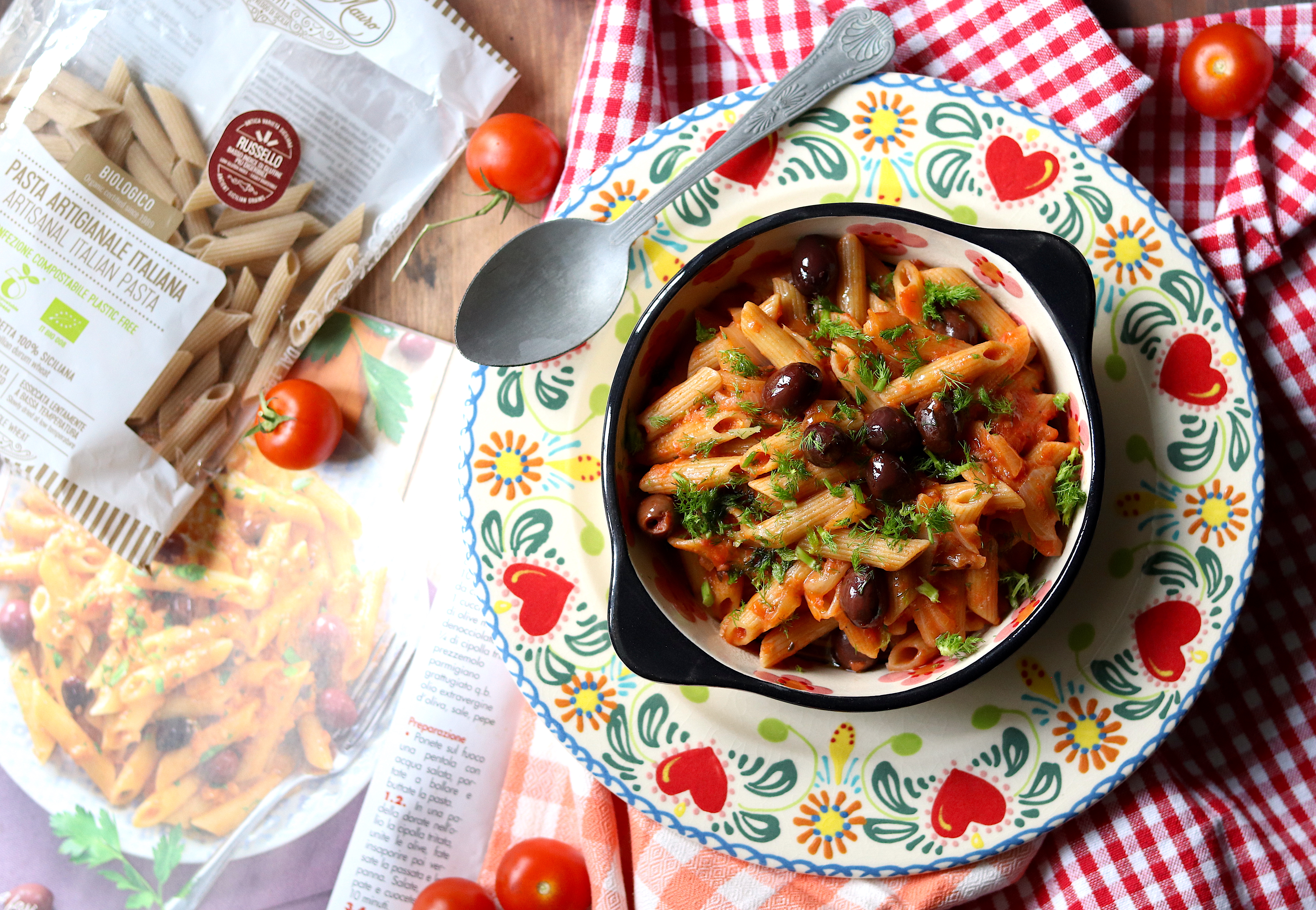 Mi raccomando la qualità della pasta: per questo piatto ho scelto le penne semi-integrali Barbagallo di grano Russello, un grano antico siciliano, tipico dell’isola (è il più antico insieme al Timilia), coltivato soprattutto nelle zone di Agrigento, Caltanissetta, Palermo, Ragusa e Trapani. Perfette per primi a base di salse e condimenti piuttosto importanti.