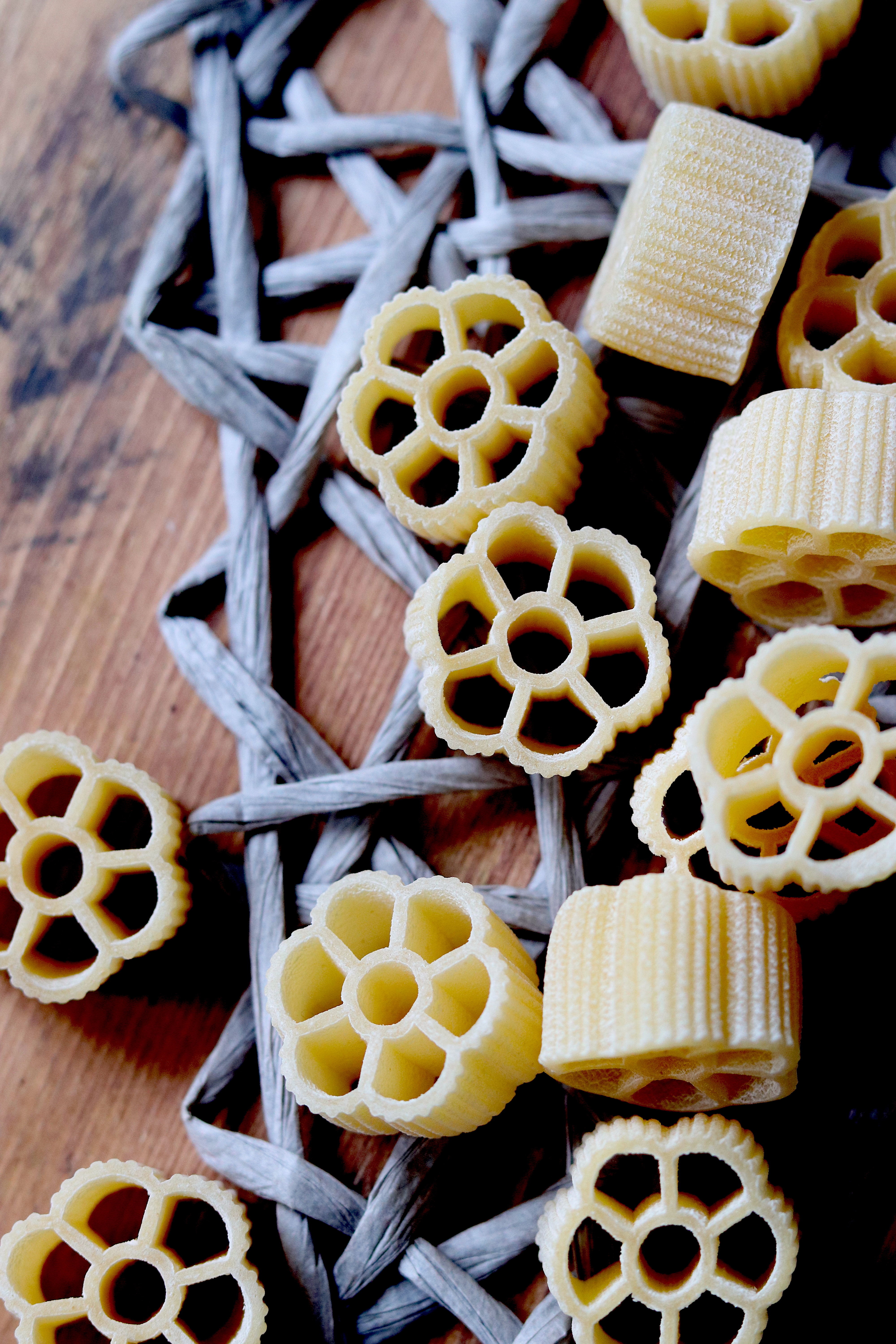 Rotelle artigianali direttamente da Benevento (avevo già iniziato qui a raccontarvi dei Pastai Sanniti) incontrano la Lucania dei peperoni Cruschi e la Puglia dell’extravergine. Le verdure sono tagliate lunghe e sottili, per le carote invece ho adoperato uno speciale temperino (a questo link potete trovarne tanti diversi).