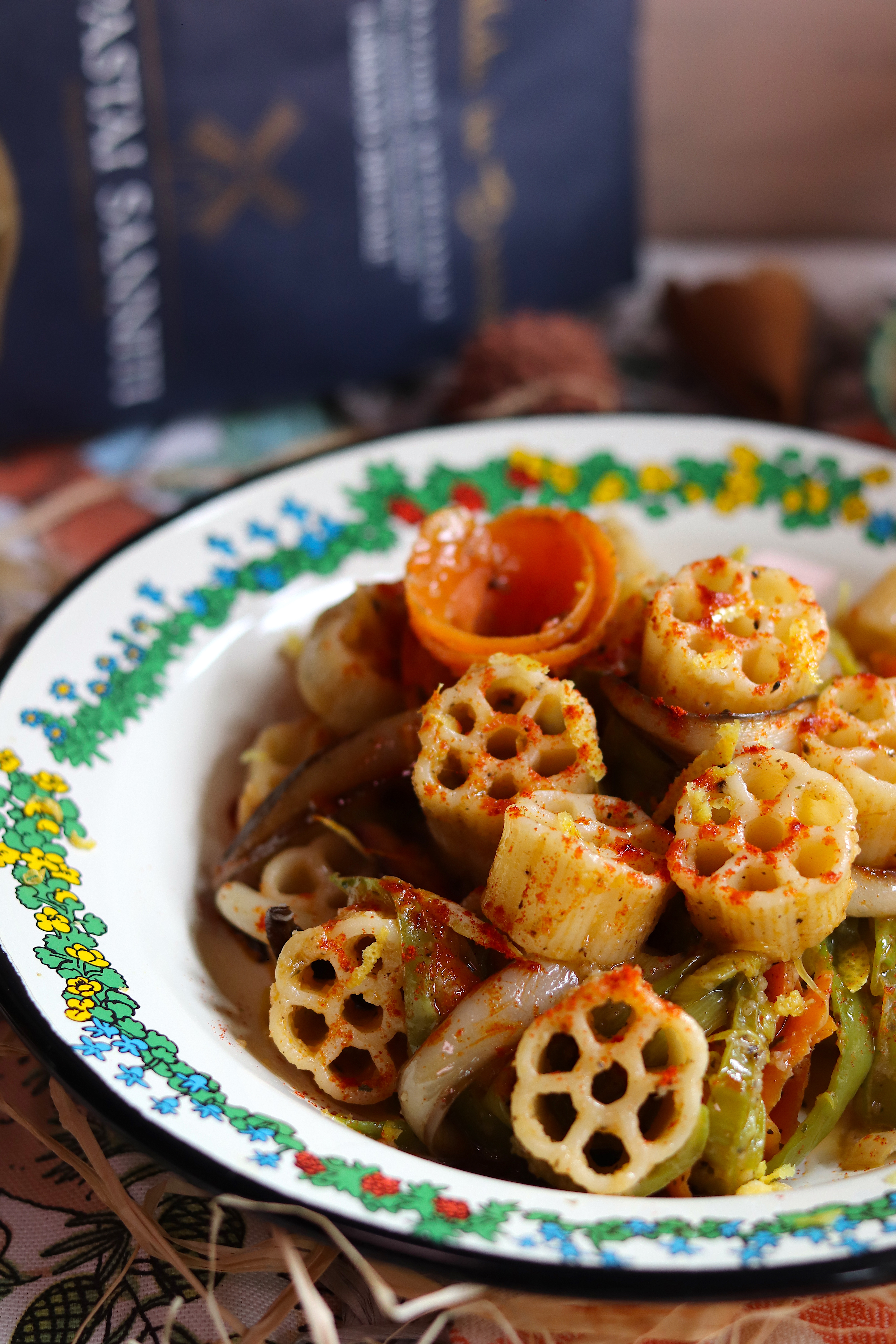 ROTELLE DI VERDURA CON POLVERE DI PEPERONE CRUSCO. Piatto vegano