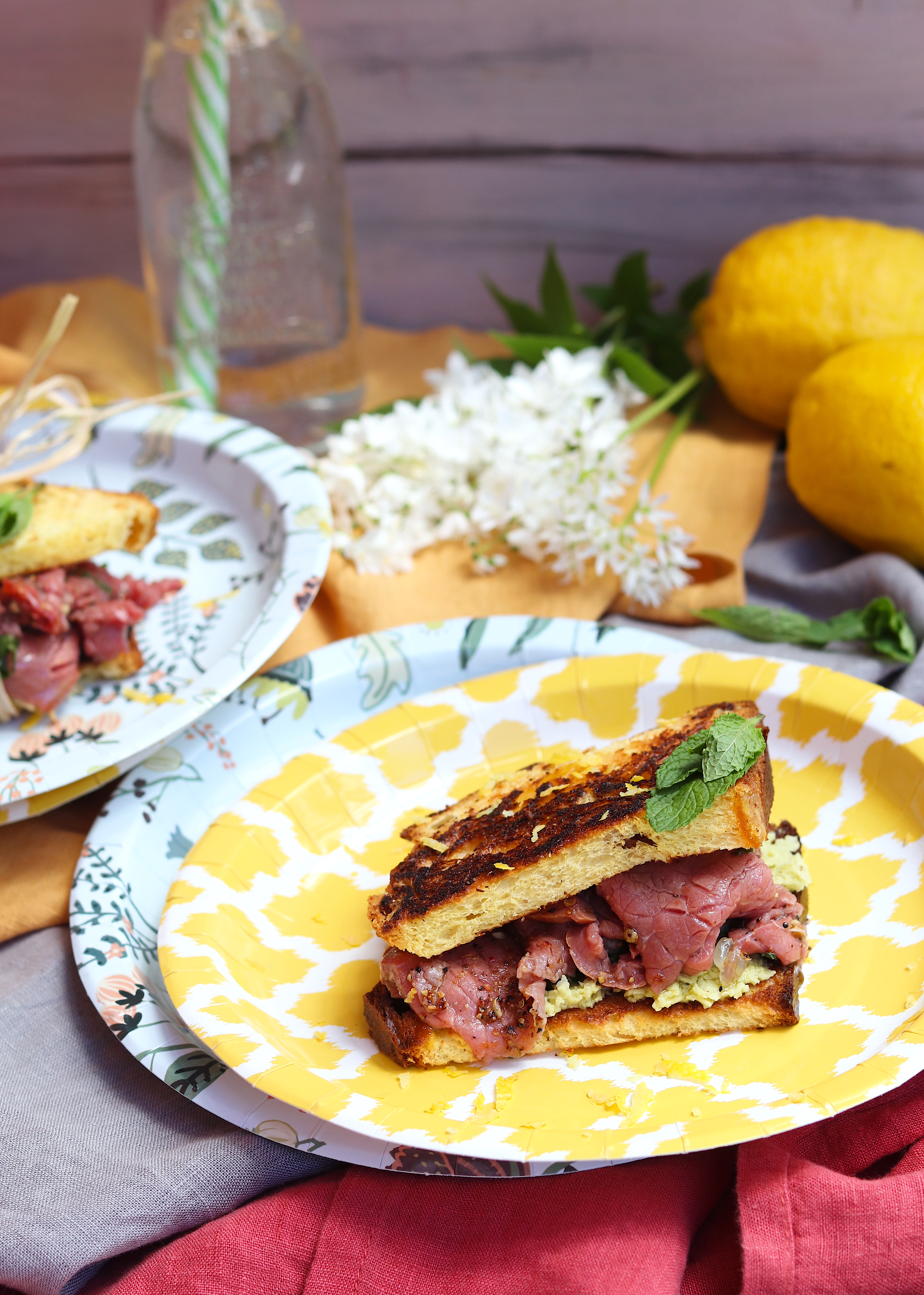 - Spalmate su due fette la crema di fave, aggiungete le fette di carpaccio e coprite con le restanti due fette. Servite con qualche fogliolina di menta fresca e la scorza di limone grattugiata.