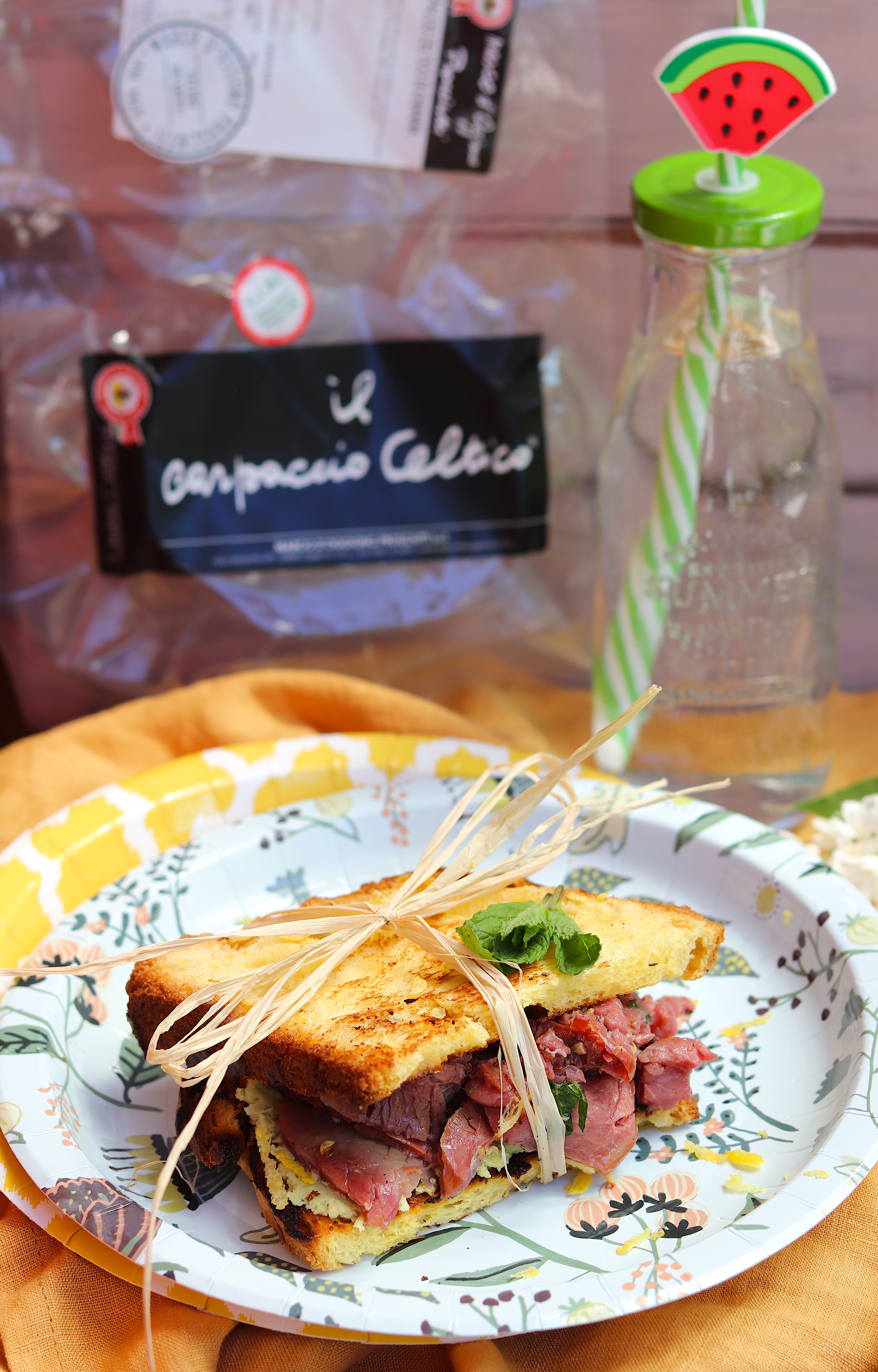CROQUE-MONSIEUR DI PANETTONE CON CARPACCIO CELTICO E CREMA DI FAVE