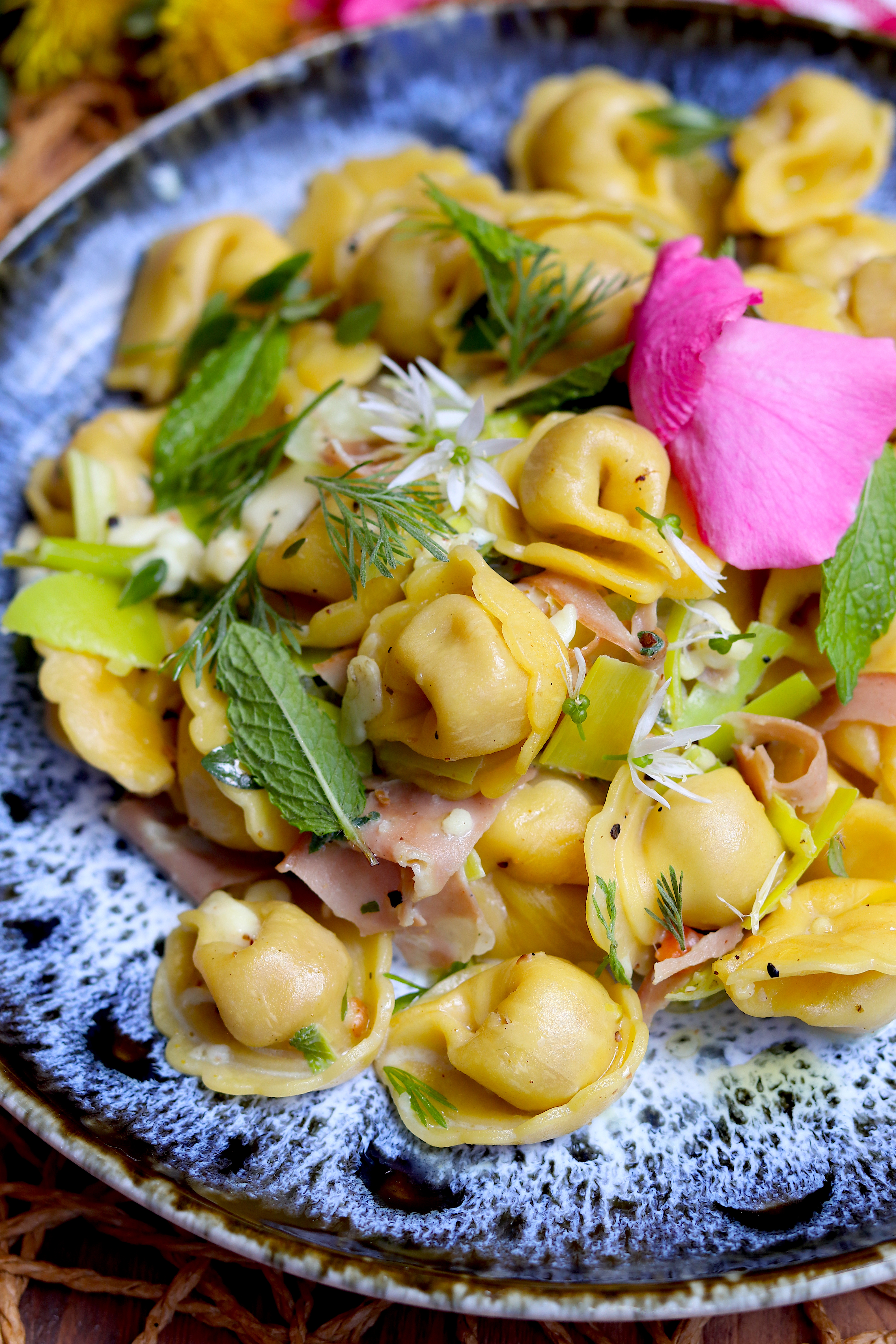 Questa volta un piatto anche adatto agli intolleranti al glutine (se però siete celiaci, fate attenzione che la mortadella non contenga glutine). Questi tortellini toscani hanno un ripieno generoso e il sapore di prosciutto è davvero appagante. Io però ho scelto di condirli in maniera proprio comfort: un po’ di mortadella e un pizzico di curry. E il mio amato formaggio di capra. Sentirete che meraviglia!
