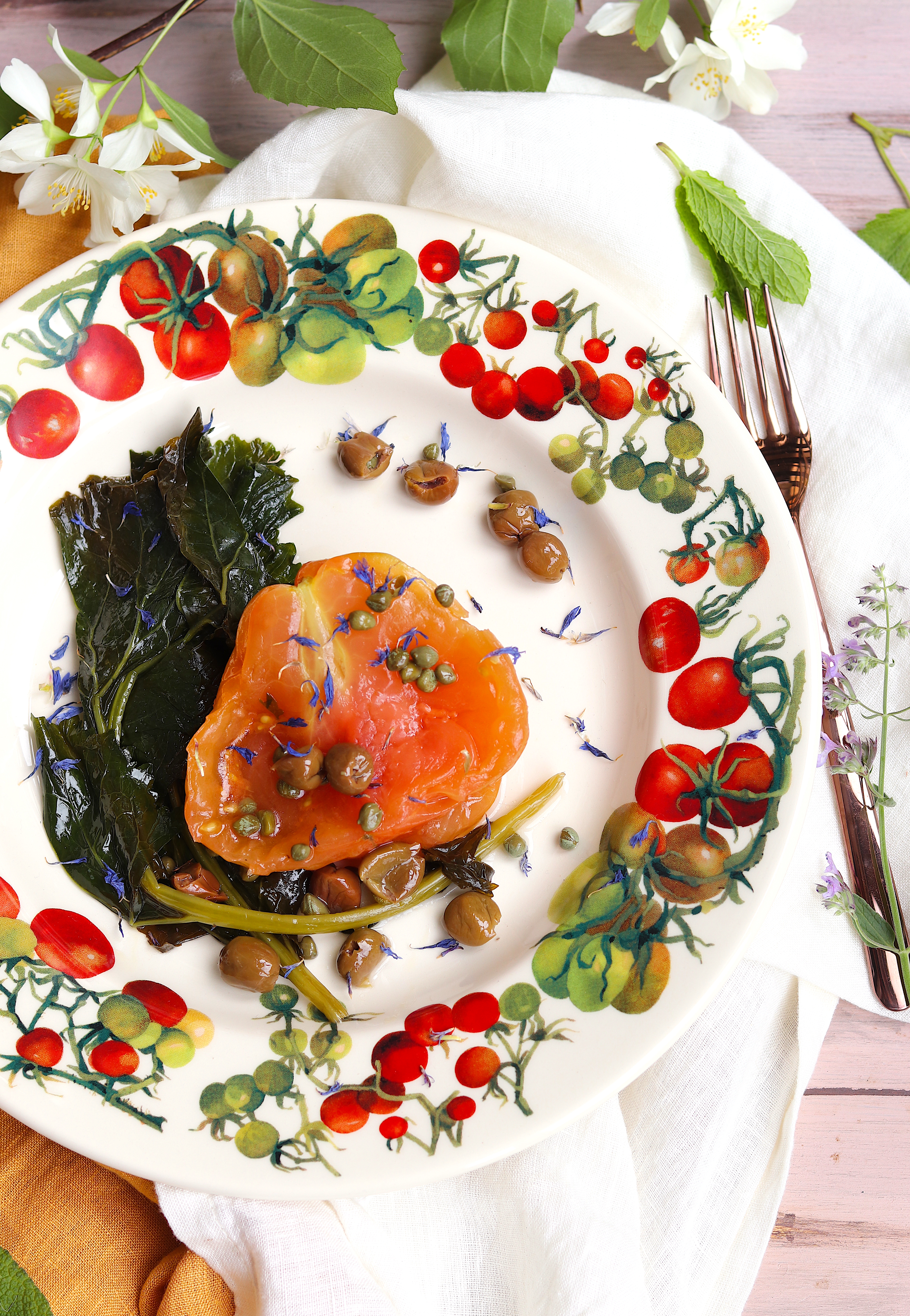 Eppure, che pomodoro era? Era IL POMODORO. La foglia grassa e succosa, lui saporito e tenero, e poi capperi e olive di condimento. Nient’altro, eppure non avrei desiderato nulla di diverso.