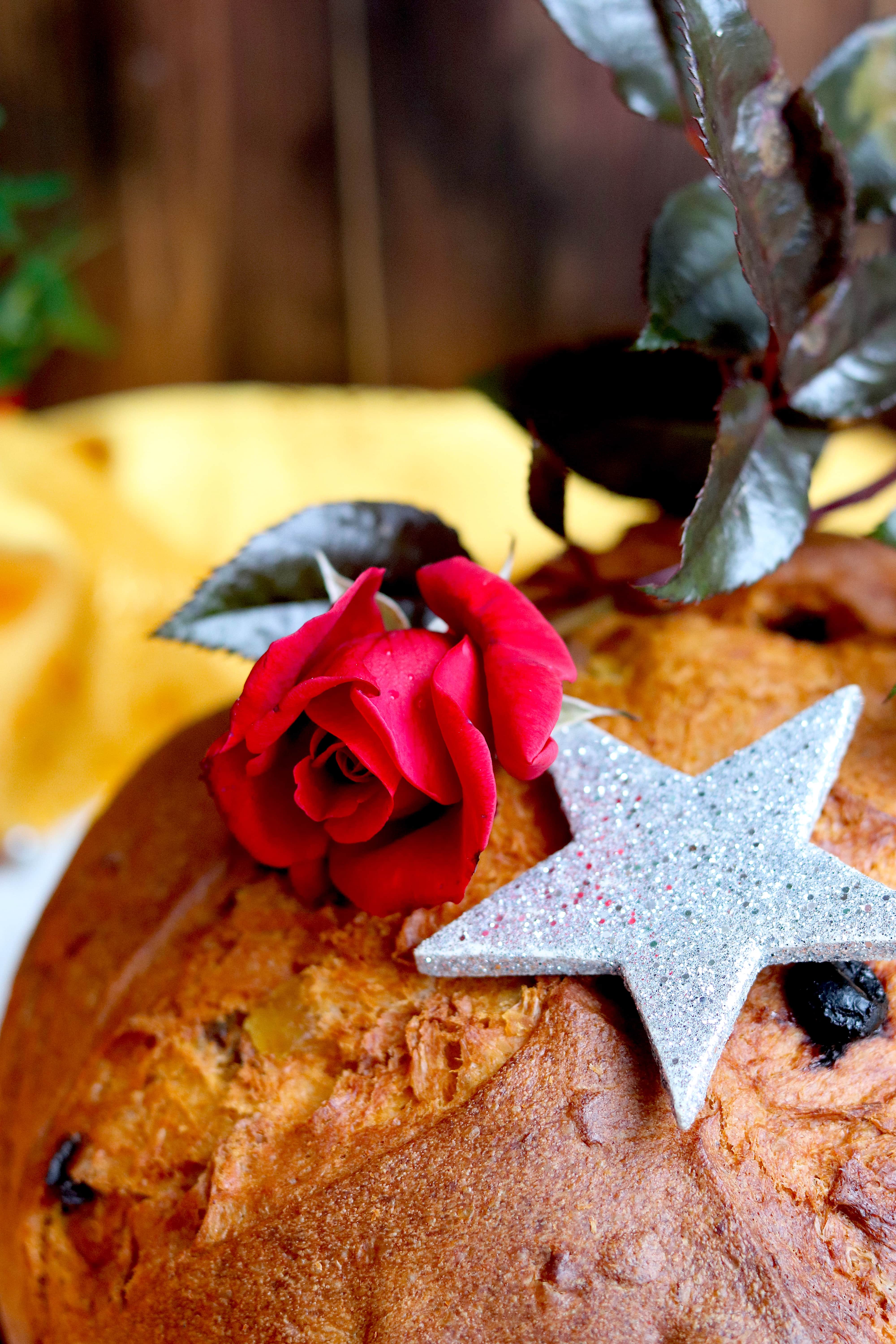 E poi gli aromi fragranti, avvolgenti e speziati che si mescolano a quello carezzevole e morbido del burro, memorie di un passato artigianale, di una sapienza antica, i colori pastello delle glasse, e mandorle, uvetta, fichi, nocciole, cioccolato, fragole, mandarino, cacao, pistacchio… Come una costellazione luminescente di profumi croccanti o vellutati, una pioggia silenziosa e poetica di armonici sapori. Perché Natale, anche quest’anno, tra le mille luci e le iridescenze delle tonalità che scaldano il cuore, vuole sorprenderci, regalarci incanto e suggestioni, in silenzio, tra luci, preziosi dettagli e una confortevole, golosa e artigianale fetta di panettone…