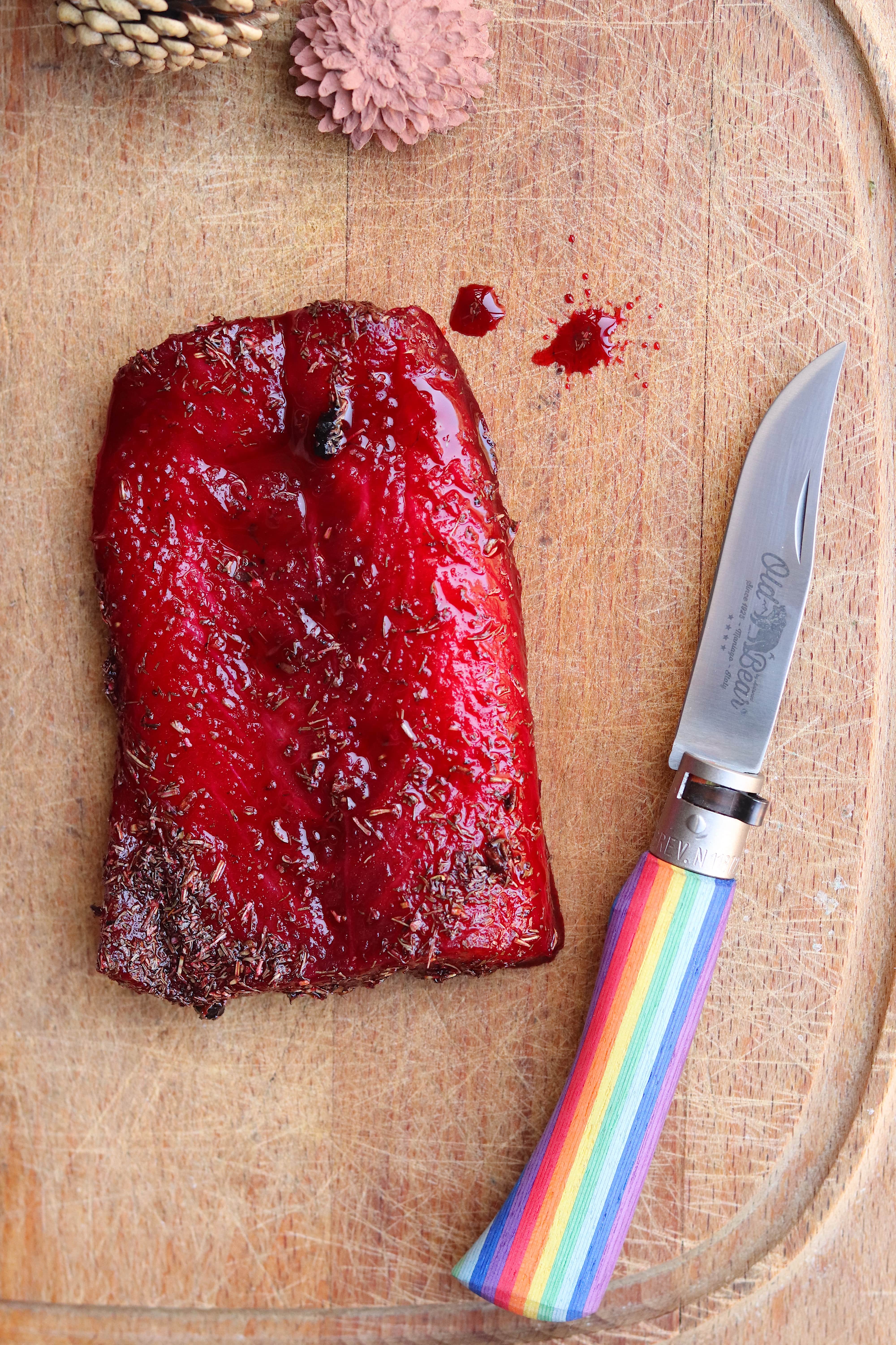 SALMONE VIOLA MARINATO ALLA BARBABIETOLA CON PANE VERDE AL PISTACCHIO