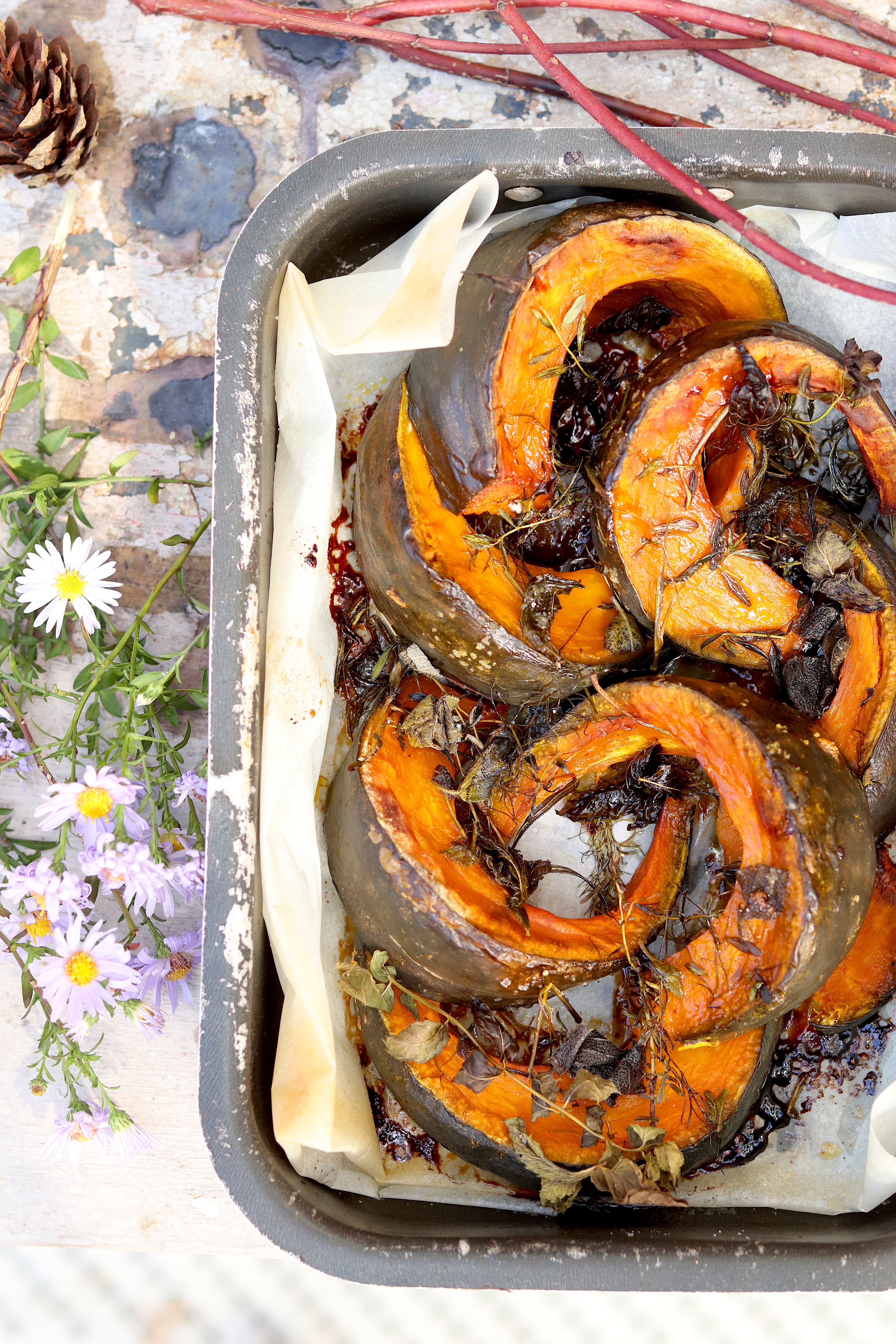 - Lavate e pulite bene la zucca, tagliatela a fettine (tenete la buccia) e disponetela in una teglia precedentemente unta. Condite le fette di zucca con l’olio ai funghi, sale, pepe, e aromi. Cuocete in forno a 180° fino a renderle belle tenere.