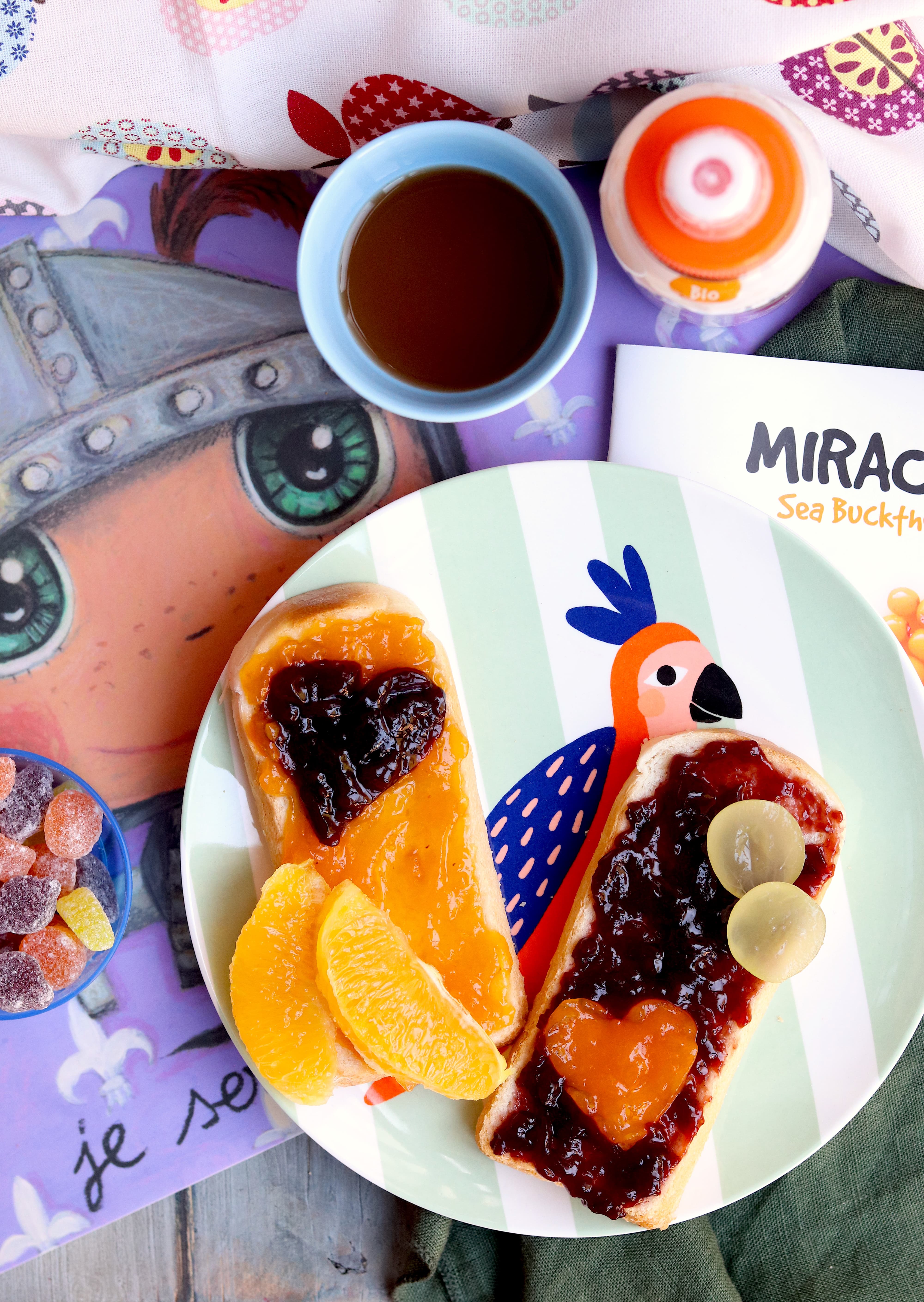 Mi piace pensare che si possa riportare i bambini alla scoperta dei gusti semplici e delle cose semplici: nulla di più sano e semplice quindi di una colazione o merenda a base di pane, marmellata… e poi una sferzata di vitamine e nutrimenti essenziali di un succo a base di olivello spinoso.