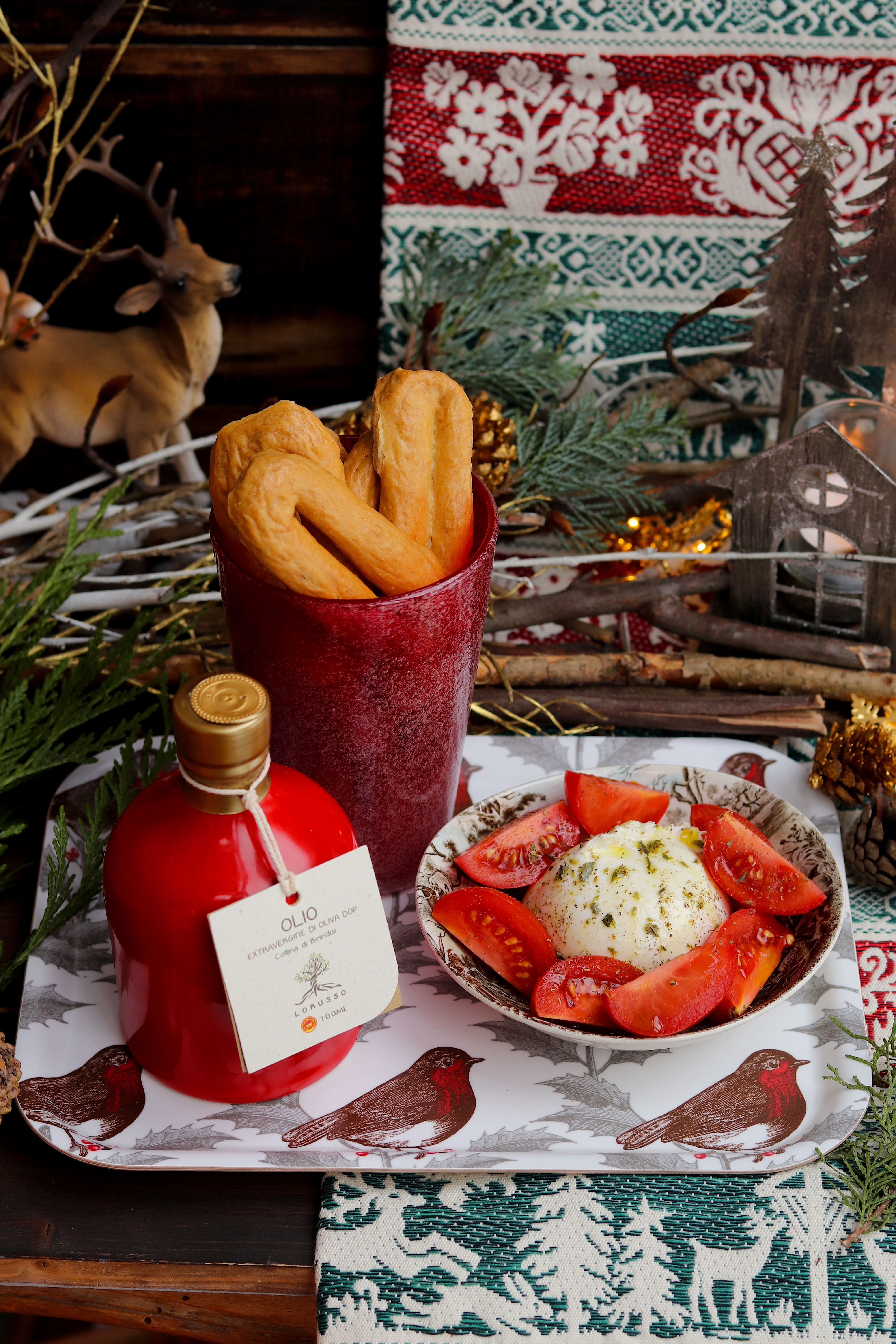 - TARALLI, BURRATINA, OLIO EVO PUGLIESE E POMODORINI