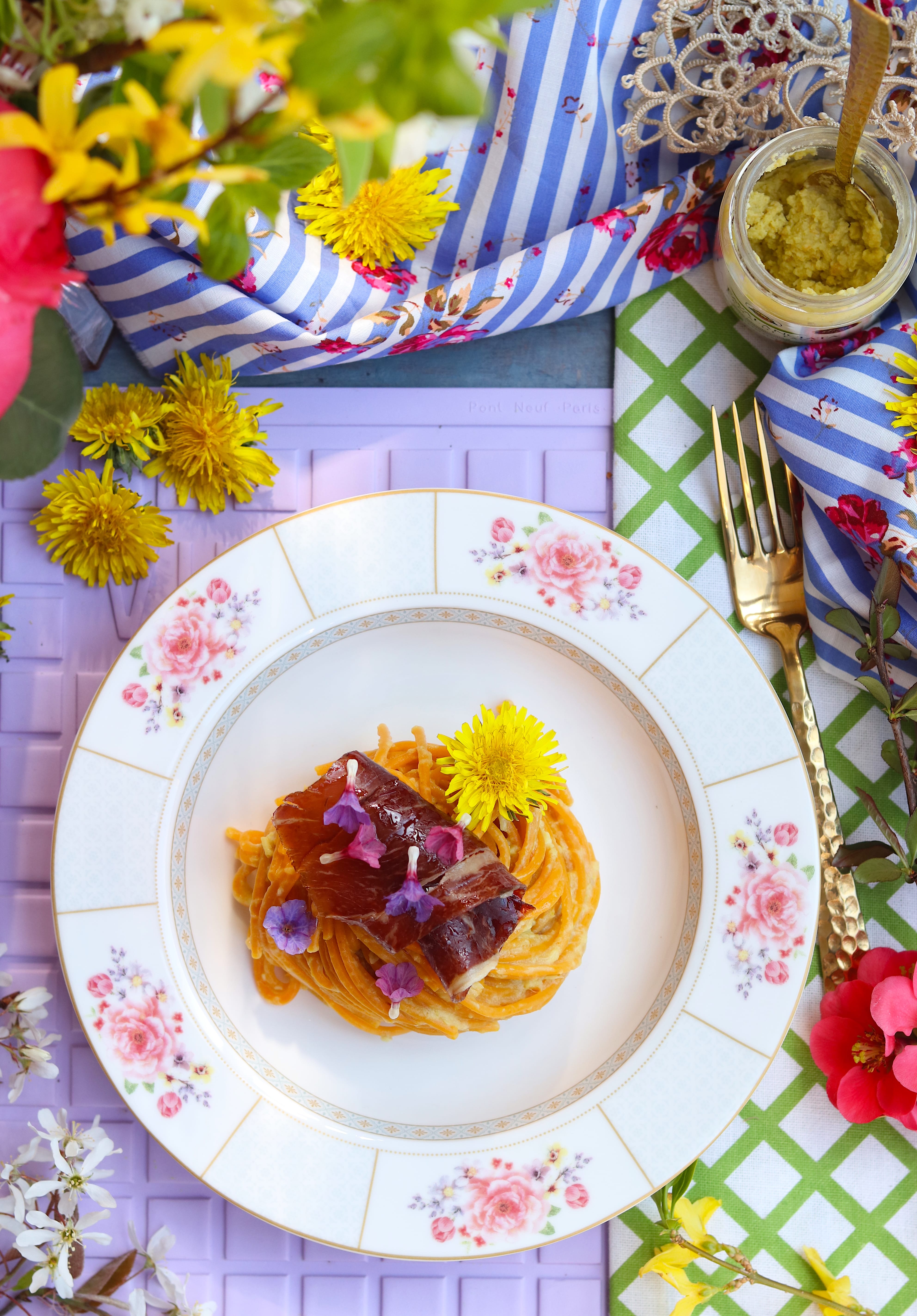 SPAGHETTI ALLA CURCUMA CON CREMA DI FAVE E CECINA DE LEON IGP