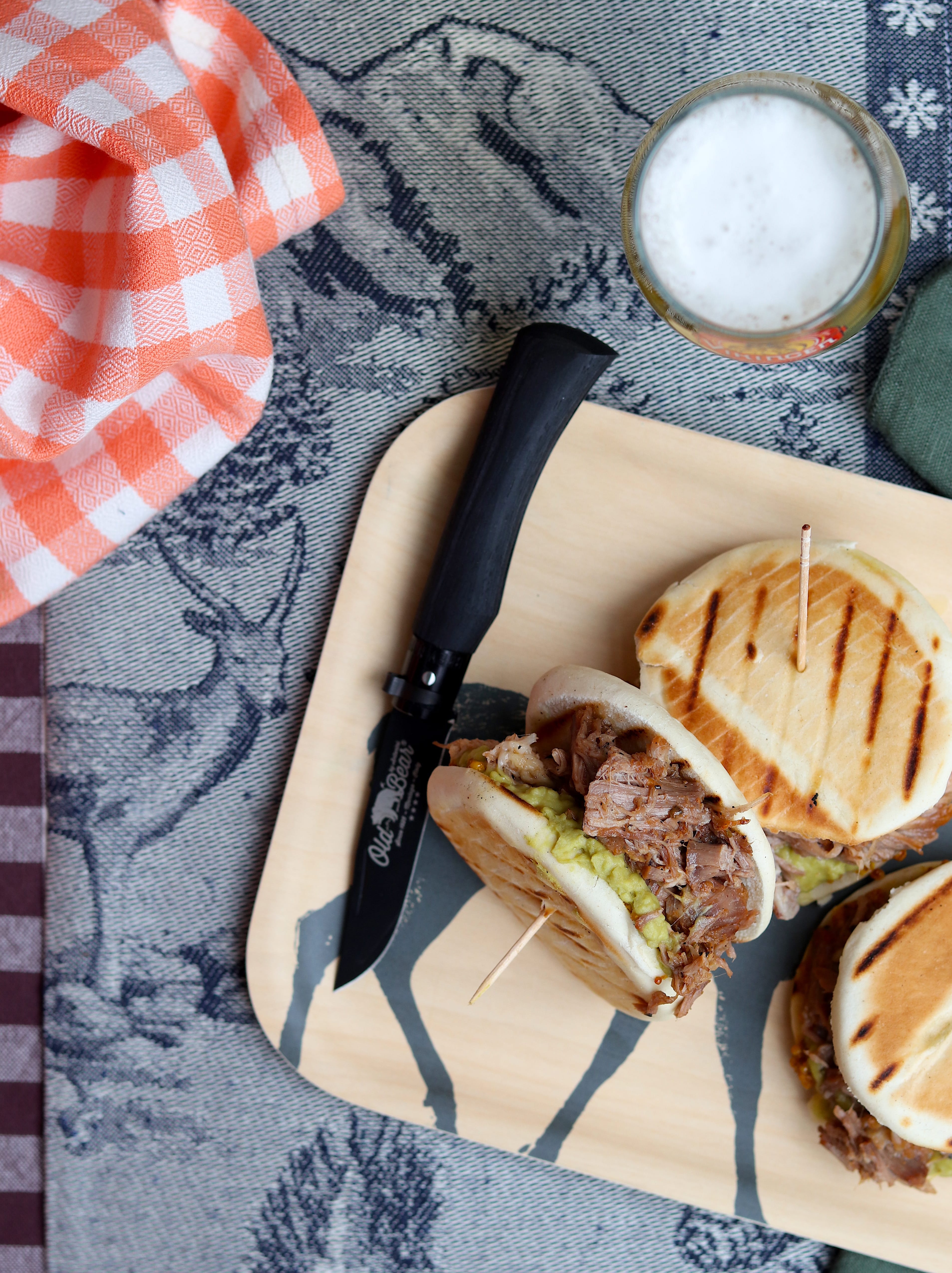Perché queste tigelline con crema di piselli allo sciroppo d’acero e un delizioso pulled pork gusto bbq sapranno darvi una sferzata di selvatico e di Nord, di foreste e di tempeste per navi, di sentieri impervi e picnic avventurosi.
