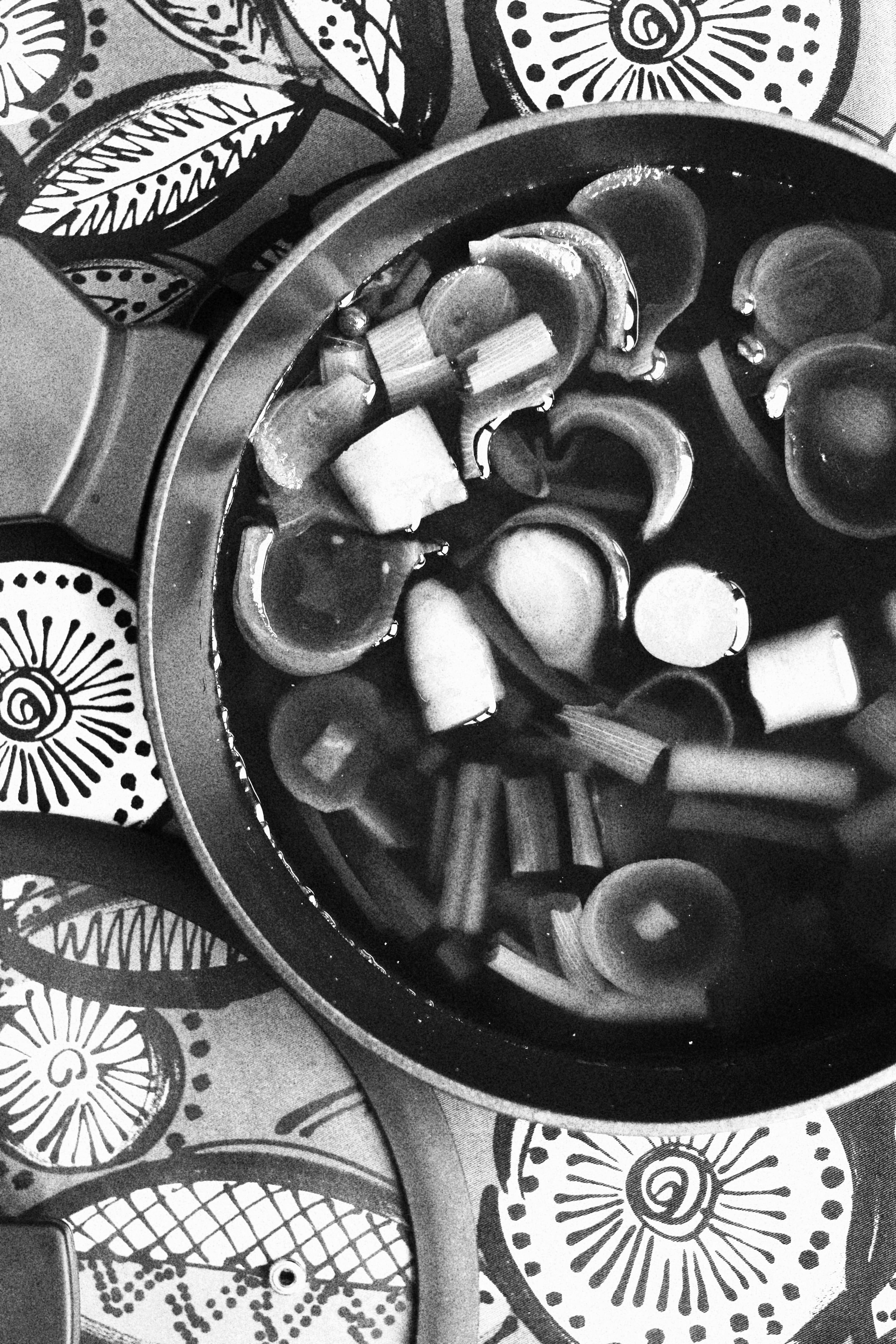 - Il giorno prima preparate il brodo: in una pentola unite le verdure a pezzetti e il resto degli ingredienti. Coprite con acqua e fate andare a fiamma molto bassa per circa 12-14 ore [aggiungete acqua a metà cottura]*.