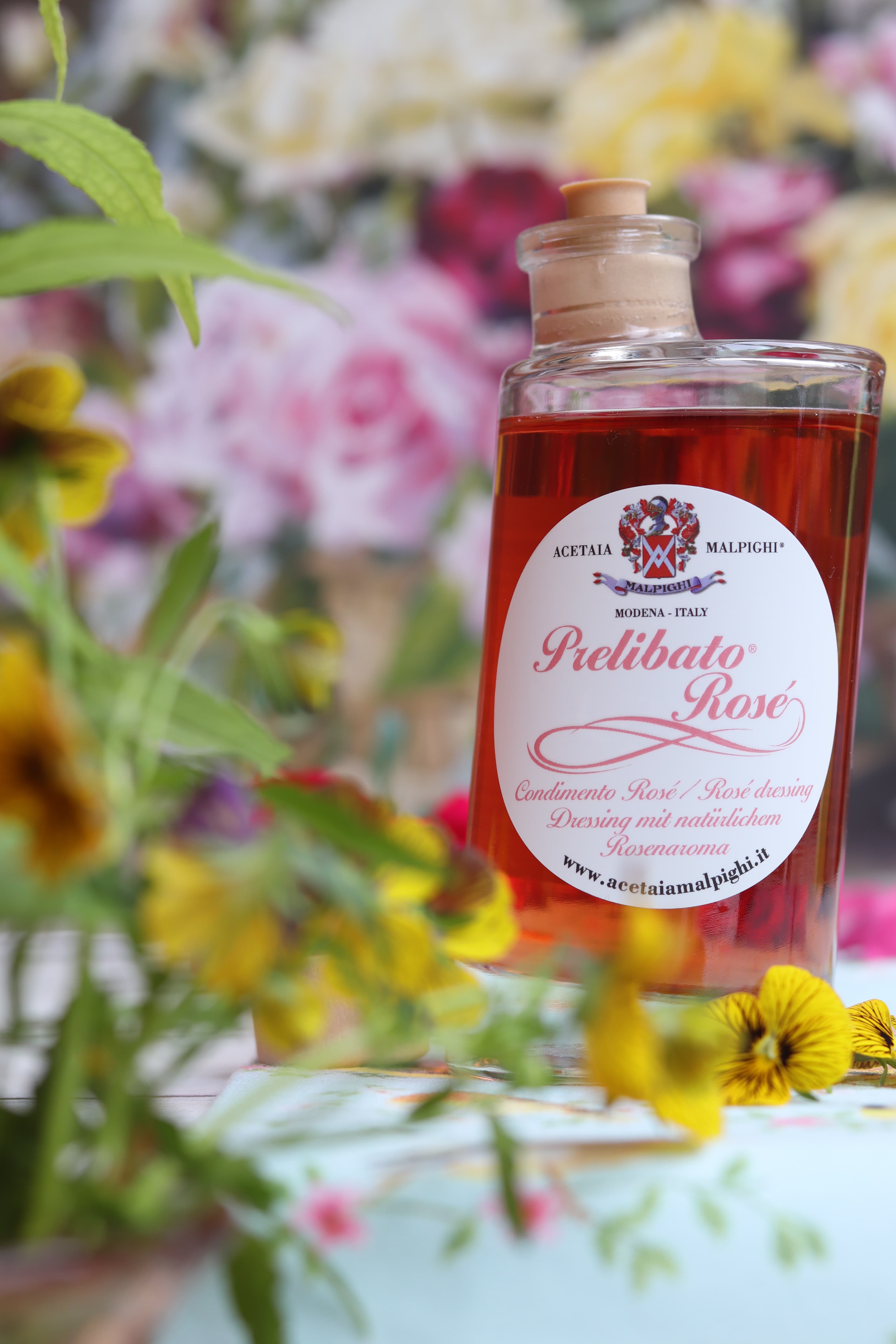 Oggi vi parlo di Prelibato Rosè della storica Acetaia Malpighi: un condimento a base di mosto d’uva Trebbiano Modenese e Uva Ancellotta, coltivate presso i filari di famiglia dell’Azienda, insieme a essenza di rosa estratta dalle piante della loro Azienda Agricola “Tenuta del Cigno”.