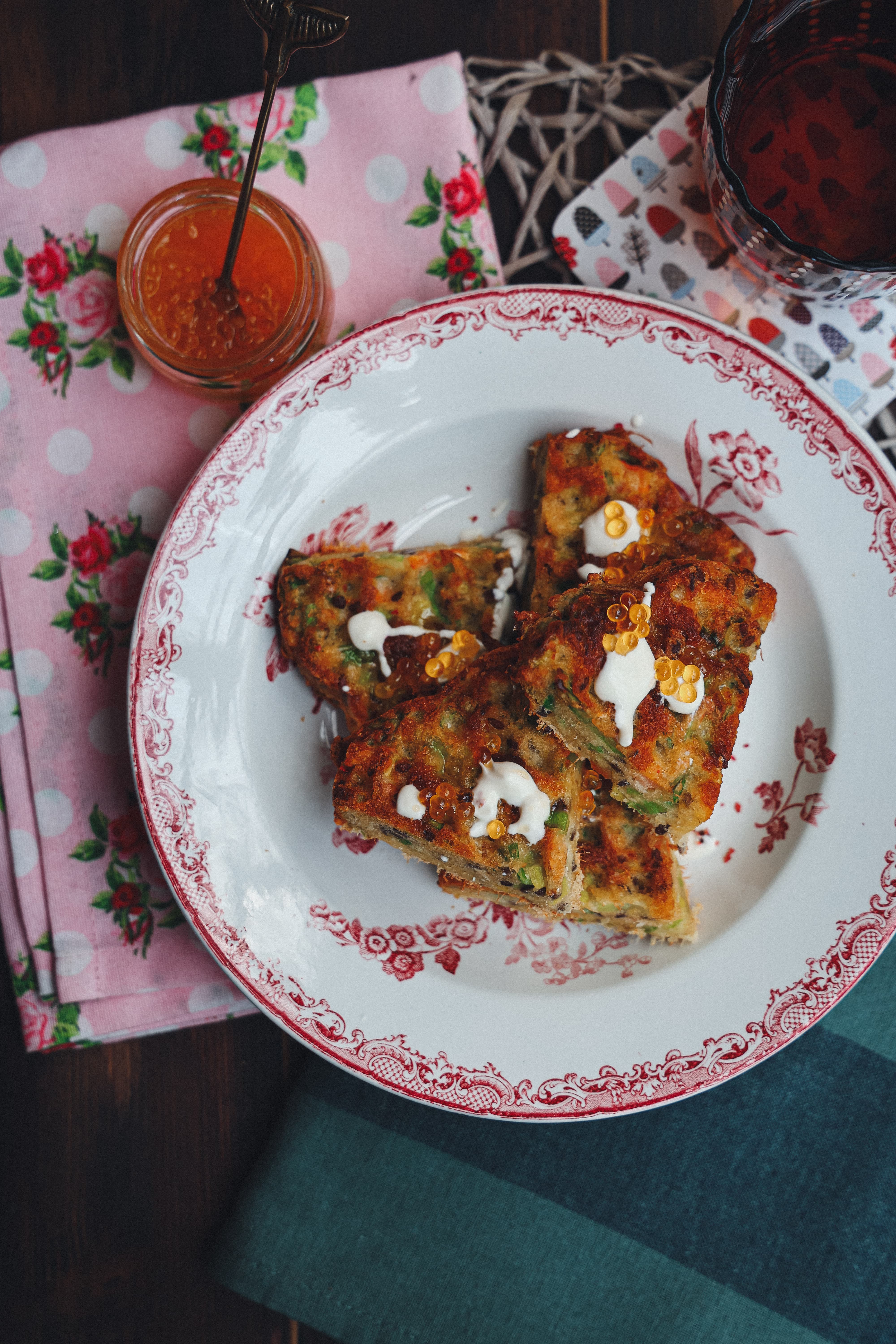- Servite i waffles con le perle di granchio e – a piacere – formaggio fresco o panna acida.