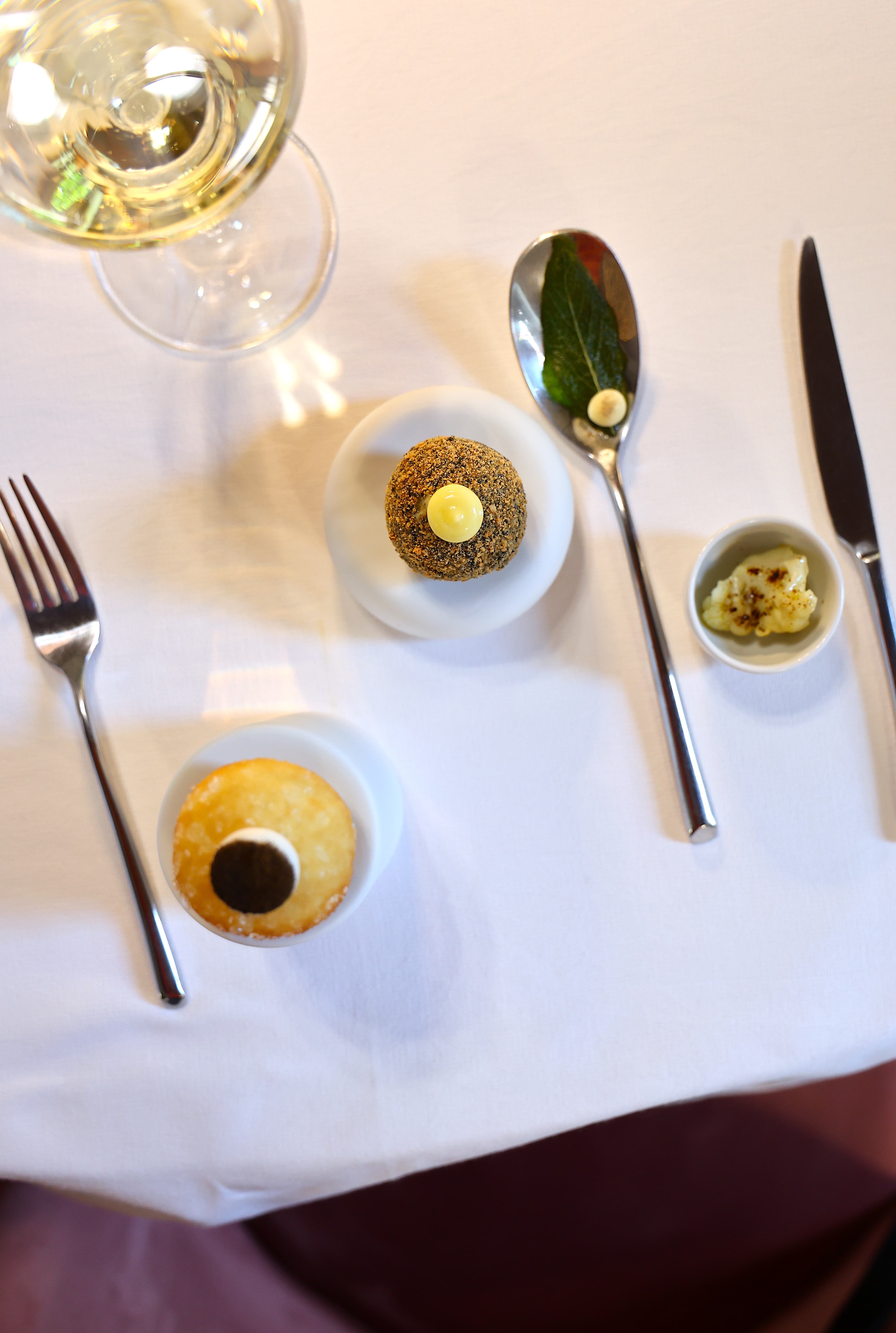 L’occhio ha la sua parte: piatti belli da vedere, e poi una sapienza nel gioco di consistenze, contrasti, equilibri.