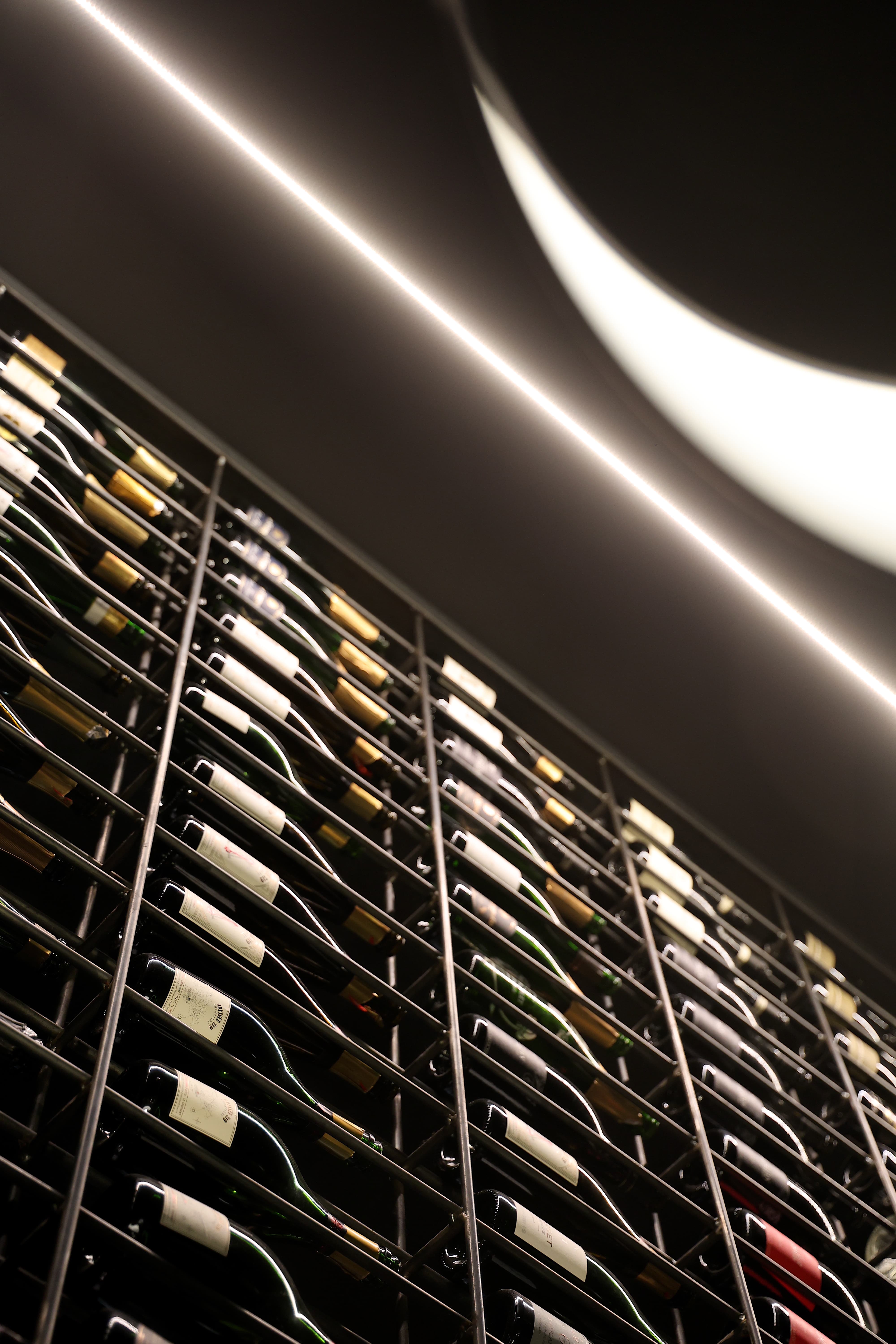 Il maître e sommelier Daniele Rasetto in sala, insieme al responsabile di sala Daniele Lanzolla, danno il benvenuto in un locale dalle luci calde e soffuse; pareti di champagne e vini selezionati con premura e grande ricerca; arredo minimal e molto piacevole.